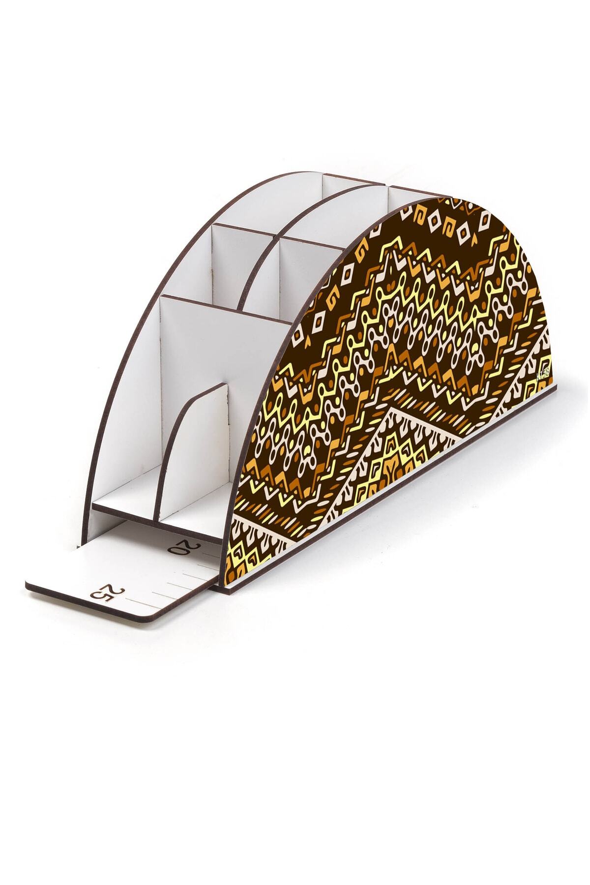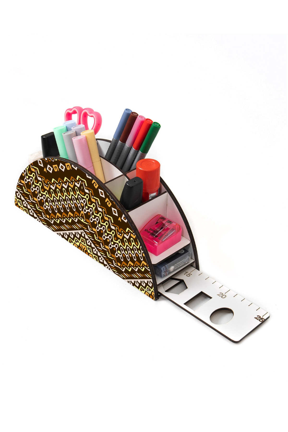 Ahşap Vip Etnik 1 Gökkuşağı Cetvelli Masaüstü Kalemlik Organizer Vip158
