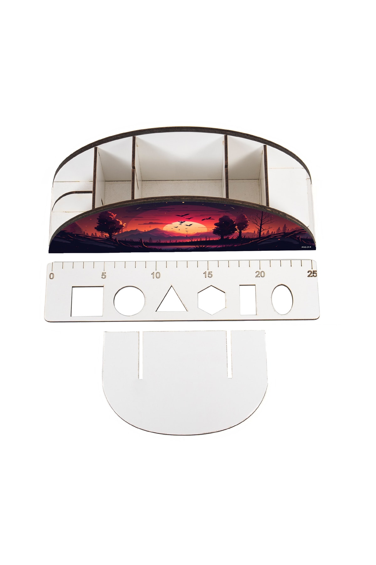 Ahşap Vip Fantastik Gökkuşağı Cetvelli Masaüstü Kalemlik Organizer Montajlı Kutulu