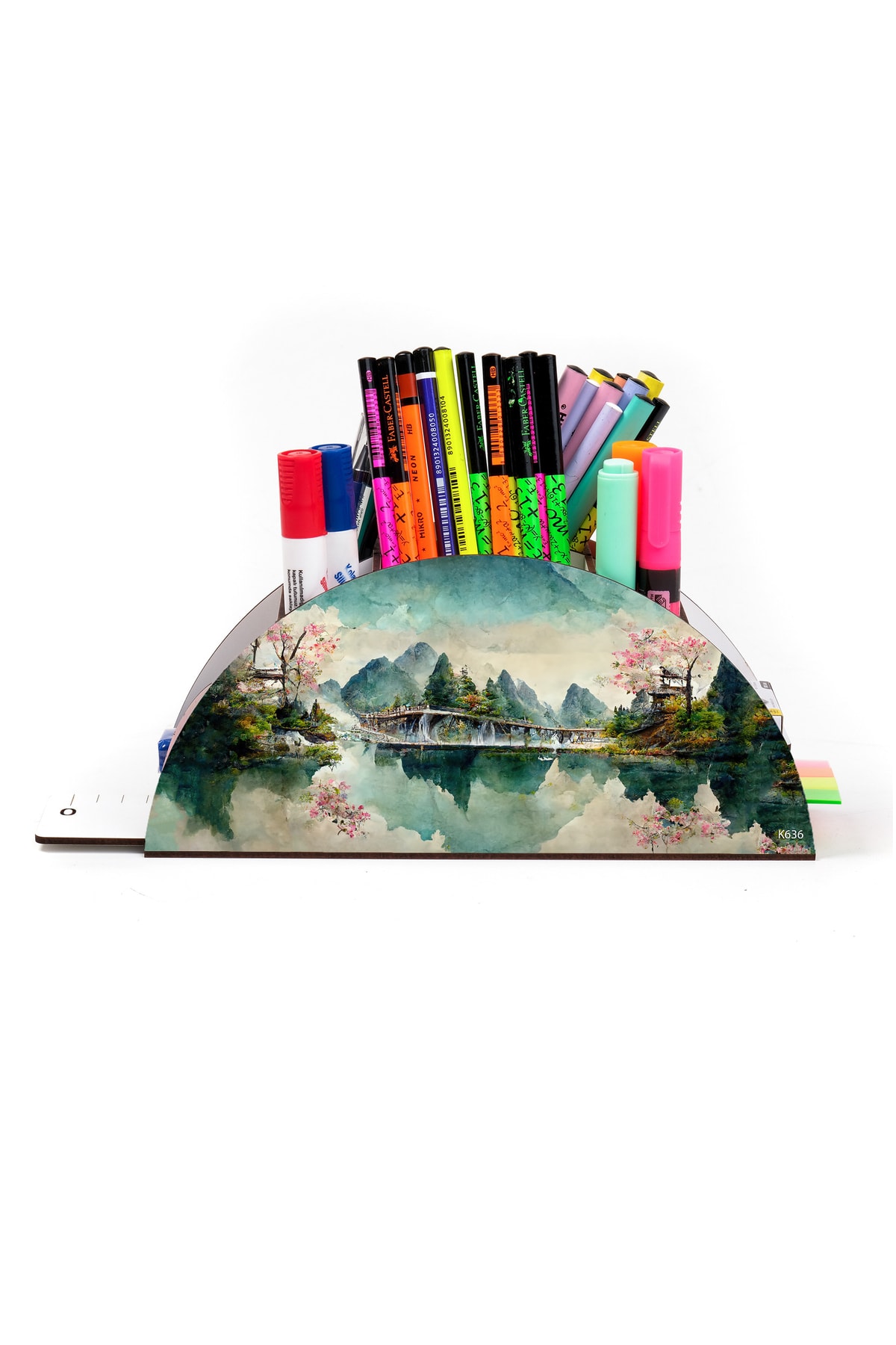 Ahşap Vip Fantastik Gökkuşağı Cetvelli Masaüstü Kalemlik Organizer Montajlı Kutulu