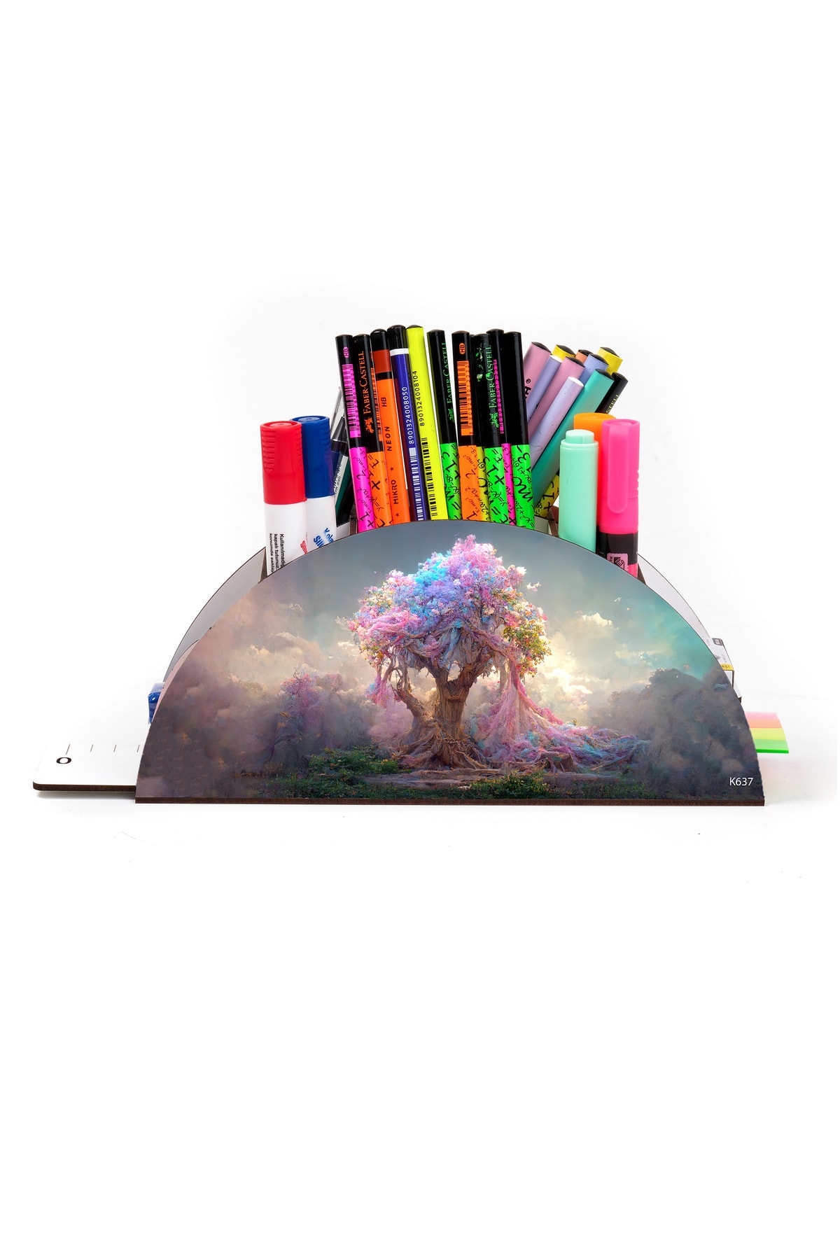 Ahşap Vip Fantastik Gökkuşağı Cetvelli Masaüstü Kalemlik Organizer Montajlı Kutulu