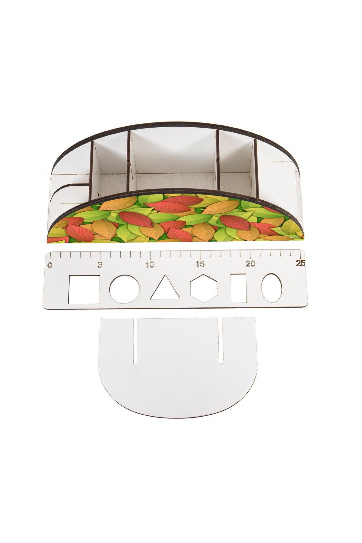 Ahşap Vip Farklı Model Gökkuşağı Cetvelli Masaüstü Kalemlik Organizer Montajlı Kutulu