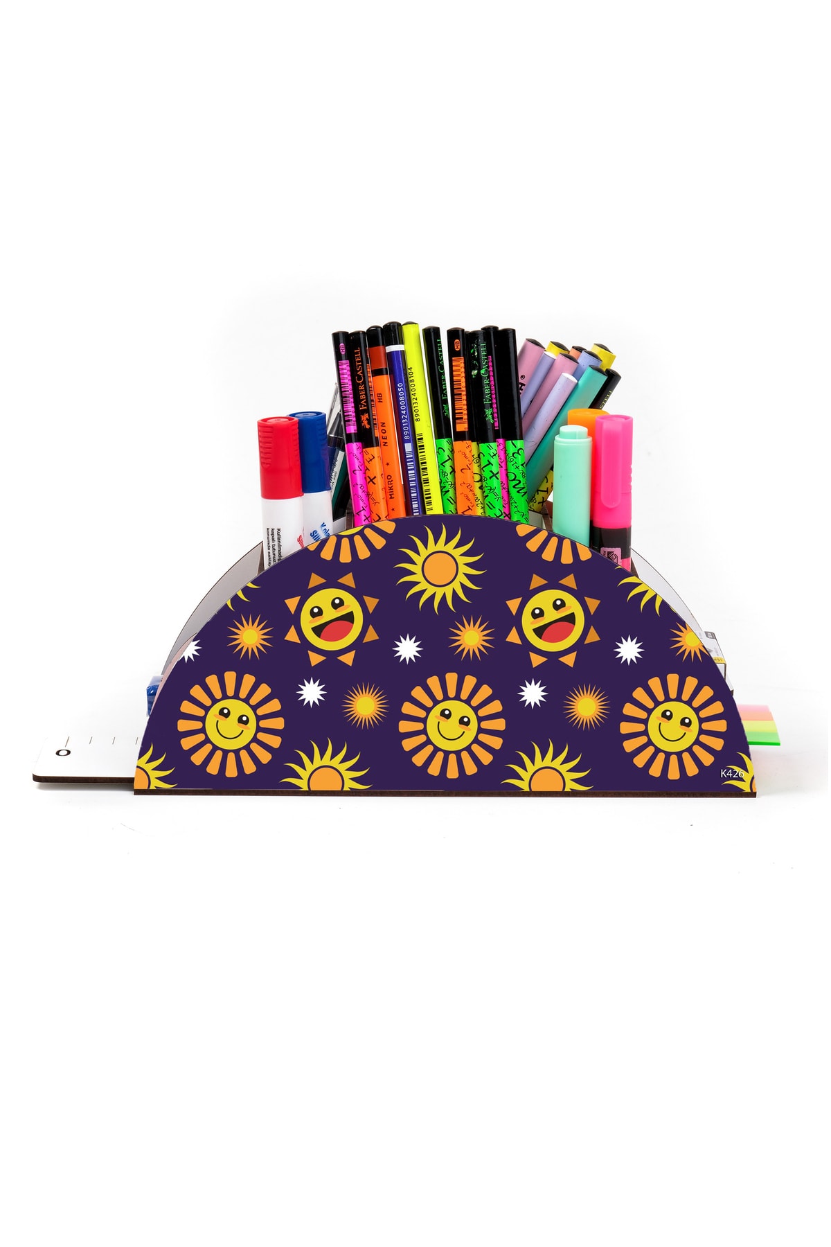 Ahşap Vip Farklı Model Gökkuşağı Cetvelli Masaüstü Kalemlik Organizer Montajlı Kutulu