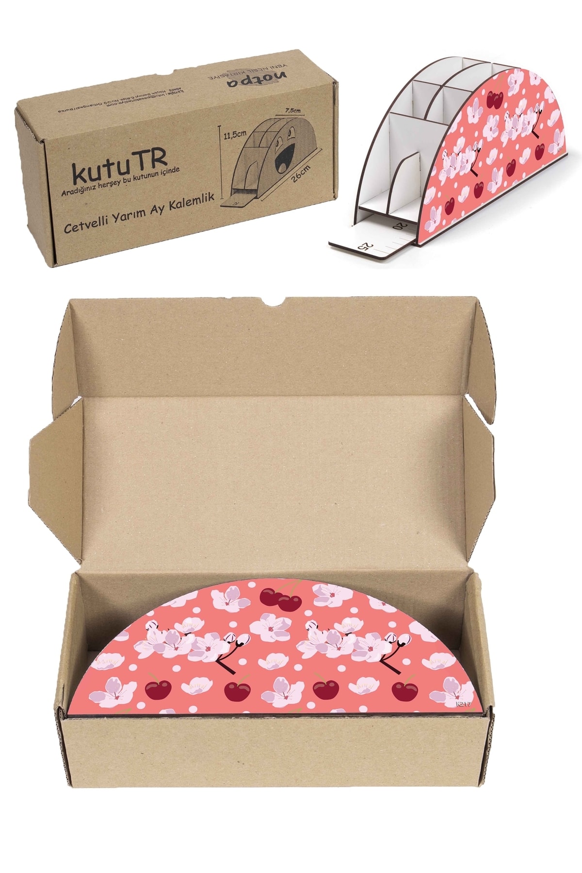 Ahşap Vip Flover Serisi Gökkuşağı Cetvelli Masaüstü Kalemlik Organizer Montajlı Kutulu