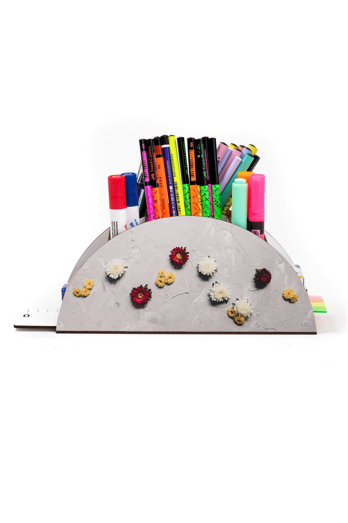 Ahşap Vip Flowers Seri Gökkuşağı Cetvelli Masaüstü Kalemlik Organizer Montajlı Kutulu