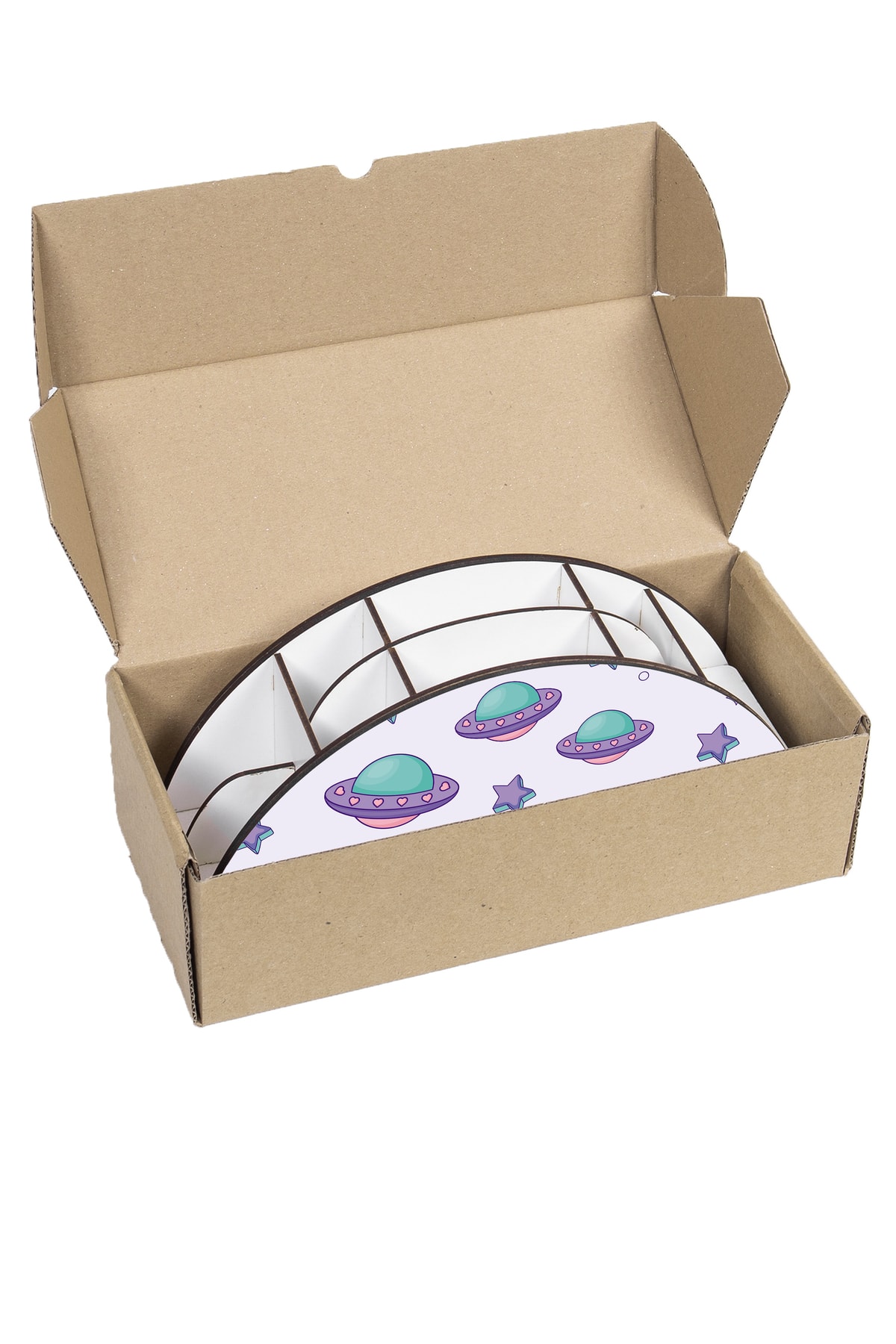 Ahşap Vip Galaksi Model Gökkuşağı Cetvelli Masaüstü Kalemlik Organizer Montajlı Kutulu