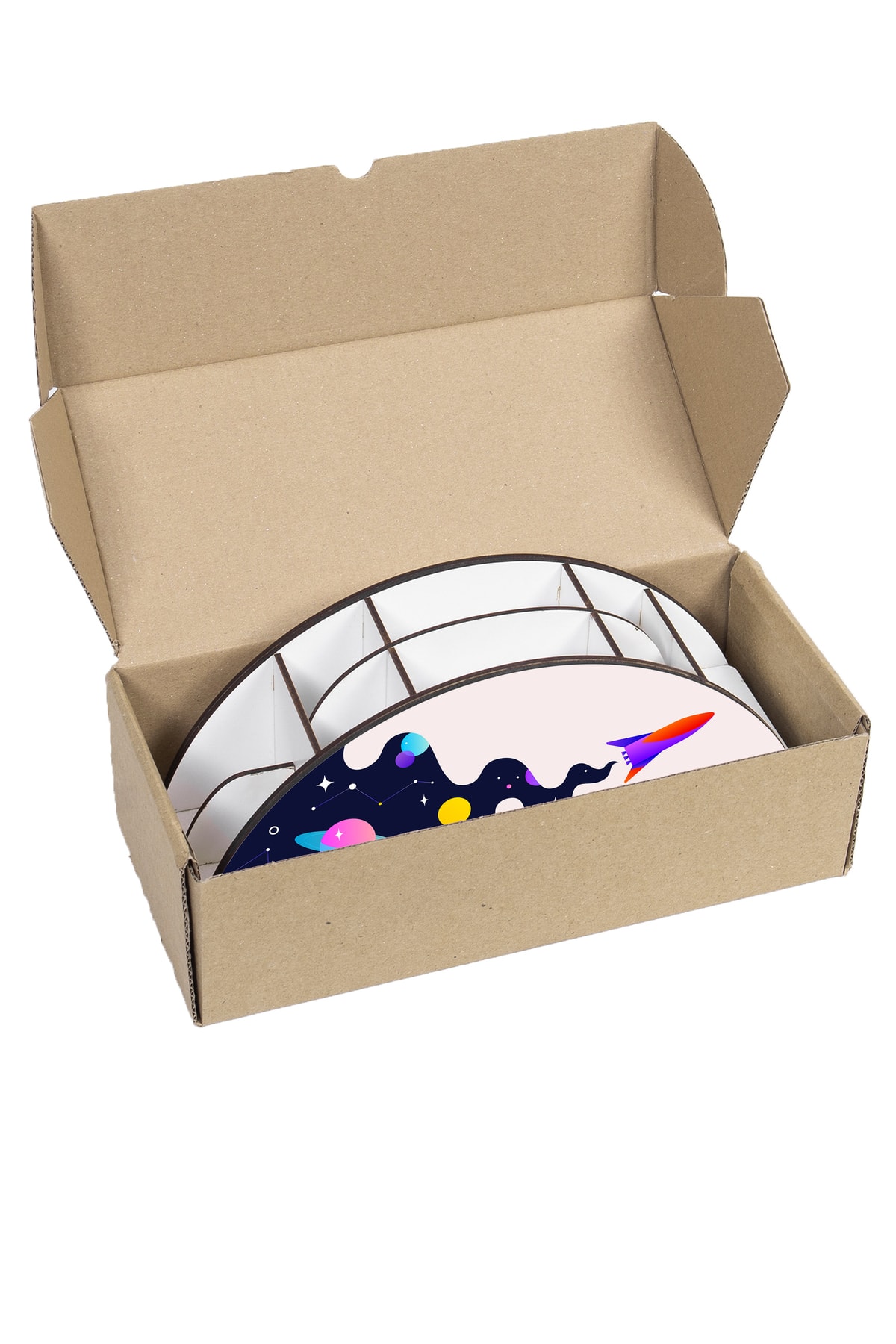 Ahşap Vip Galaksi Model Gökkuşağı Cetvelli Masaüstü Kalemlik Organizer Montajlı Kutulu