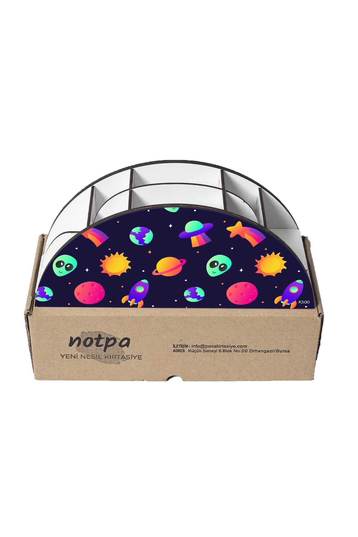 Ahşap Vip Galaksi Model Gökkuşağı Cetvelli Masaüstü Kalemlik Organizer Montajlı Kutulu