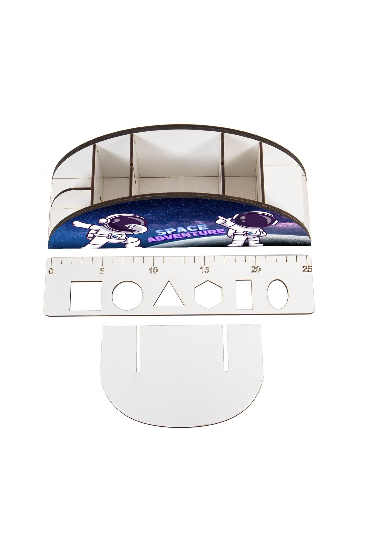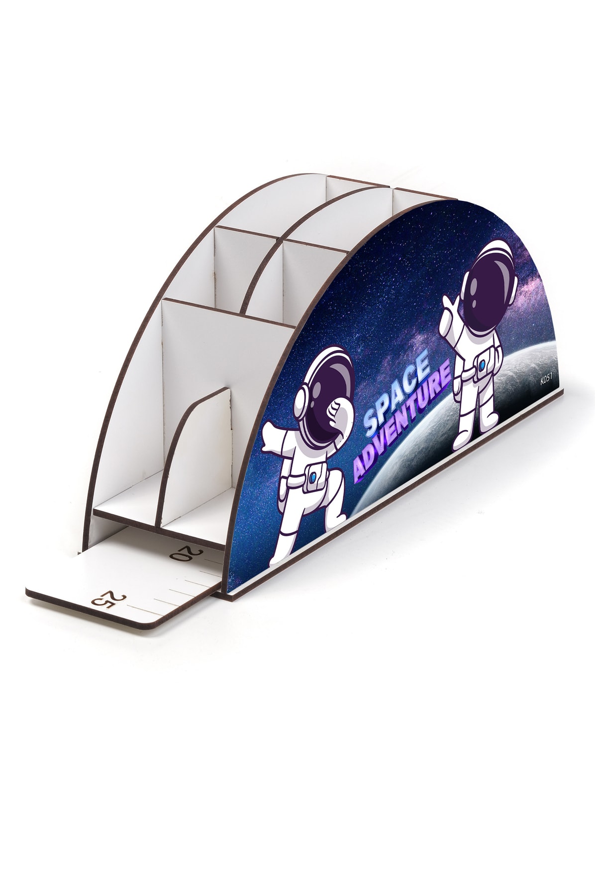 Ahşap Vip Gezegen Seri Gökkuşağı Cetvelli Masaüstü Kalemlik Çocuklar Için Organizer Montajlı Kutulu