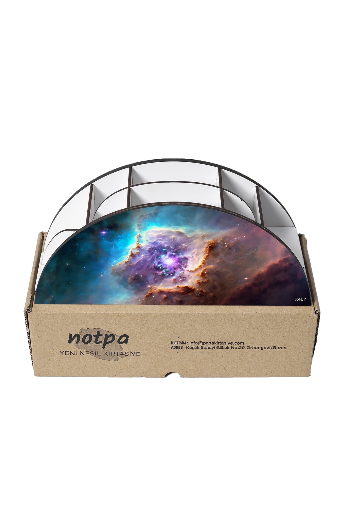 Ahşap Vip Gökyüzü Serisi Model Gökkuşağı Cetvelli Masaüstü Kalemlik Organizer Montajlı Kutulu