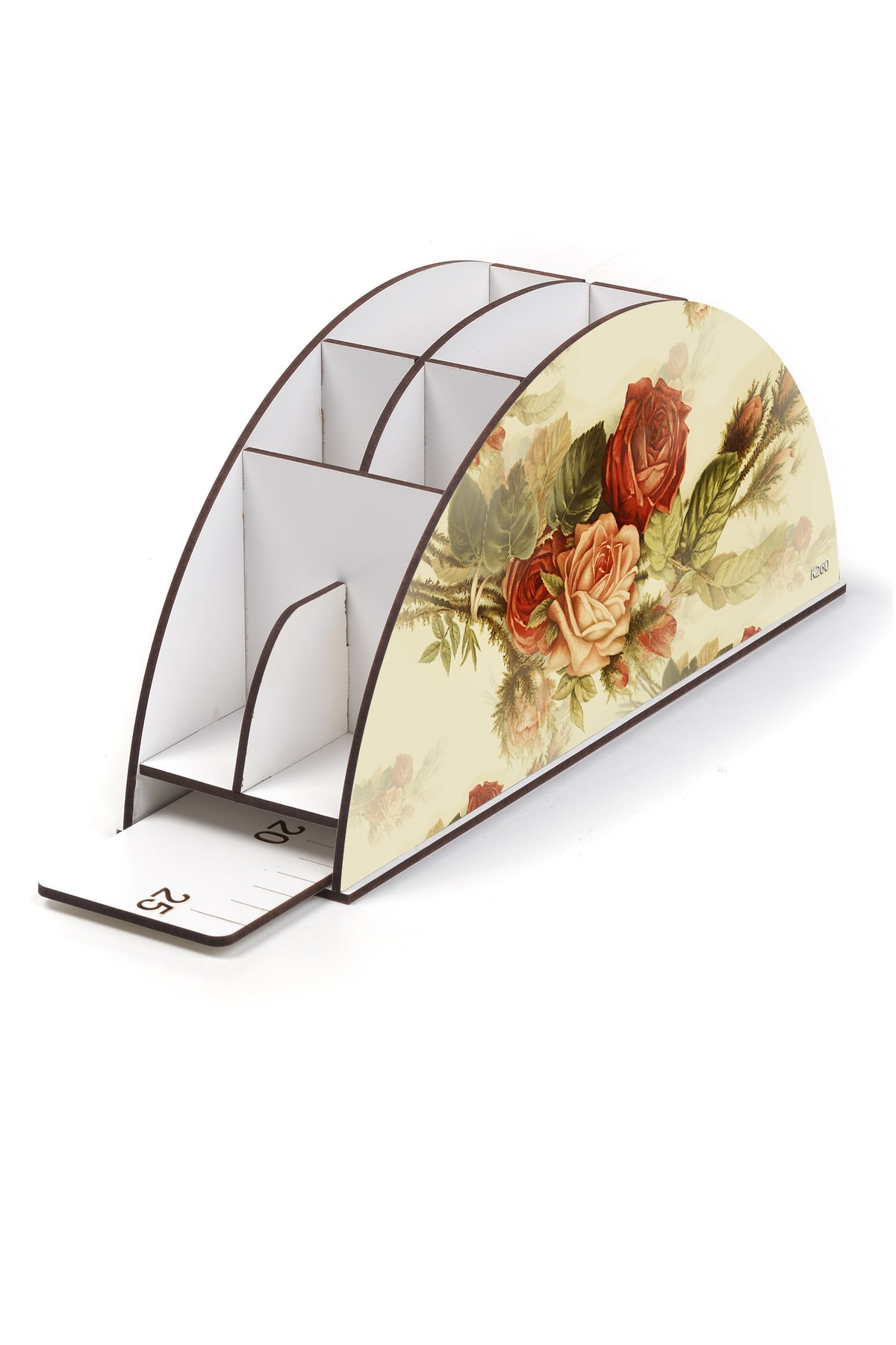Ahşap Vip Gül Serisi Gökkuşağı Cetvelli Masaüstü Kalemlik Organizer Montajlı Kutulu