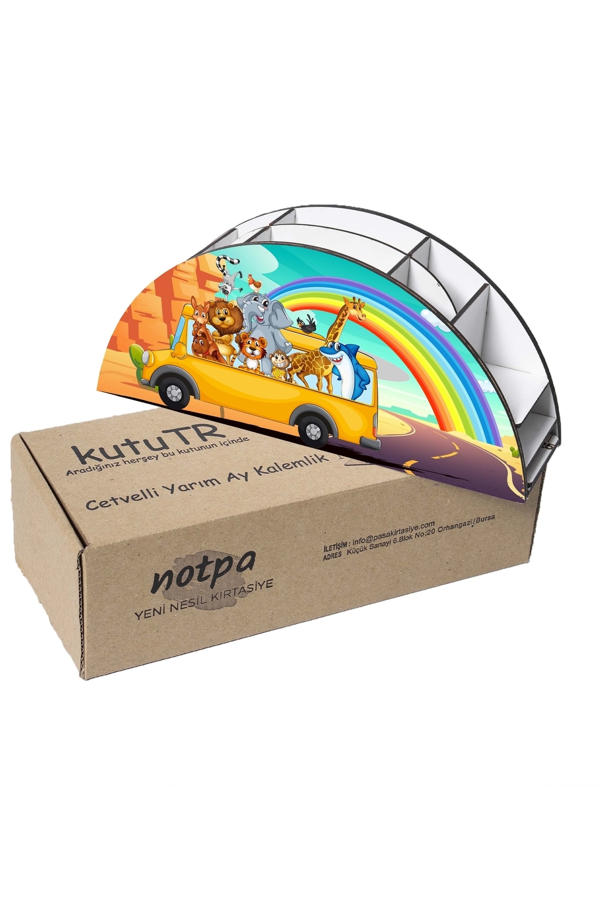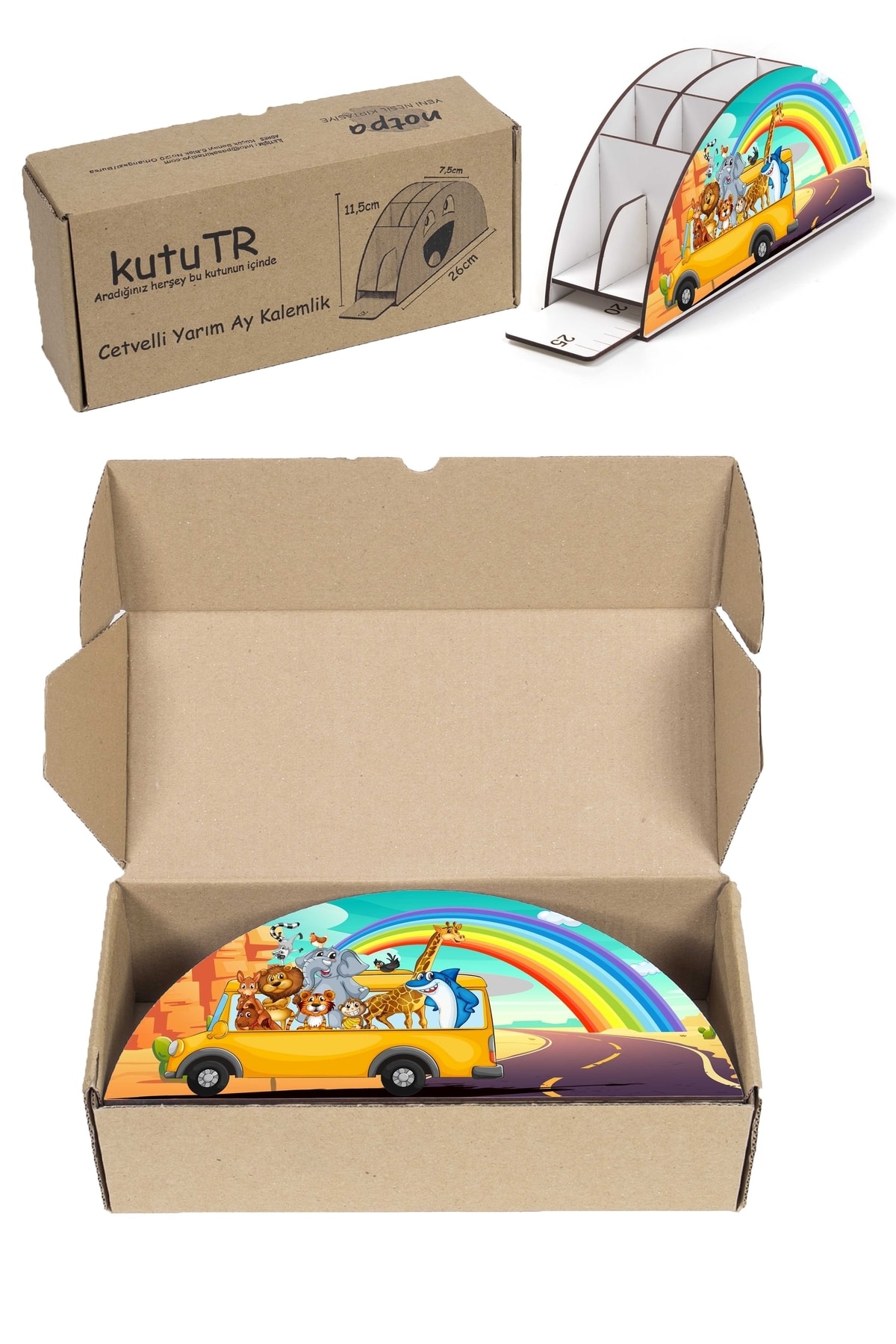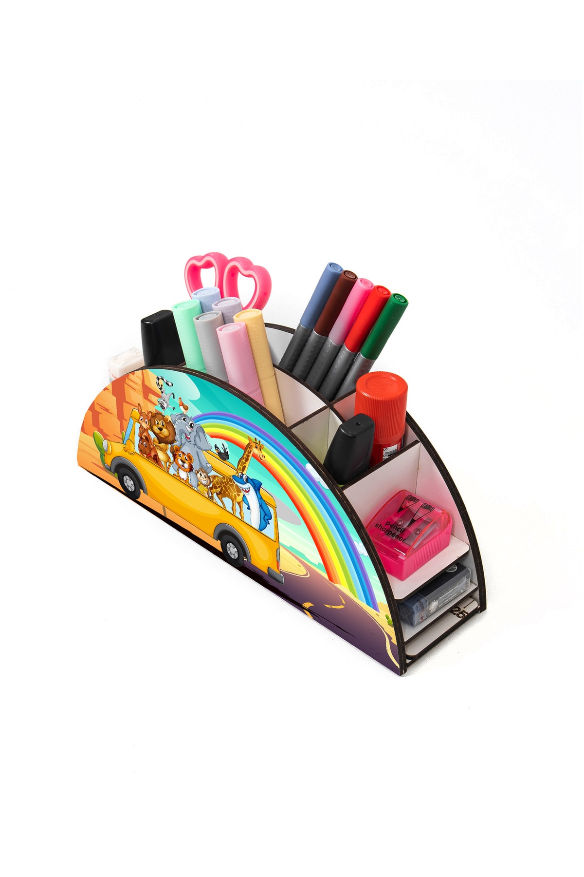 Ahşap Vip Hayvanlar Otobüste Gökkuşağı Cetvelli Masaüstü Kalemlik Çocuklar Için Organizer Vip4