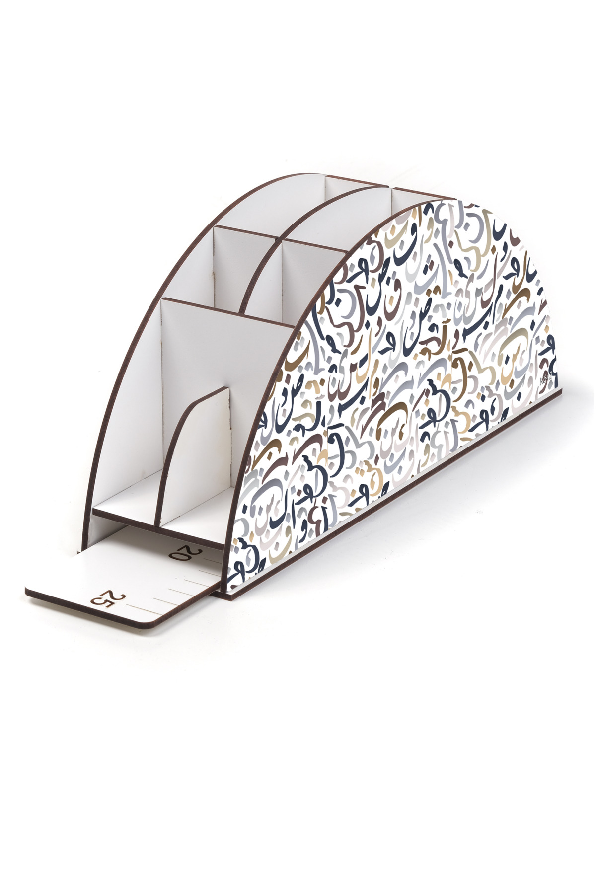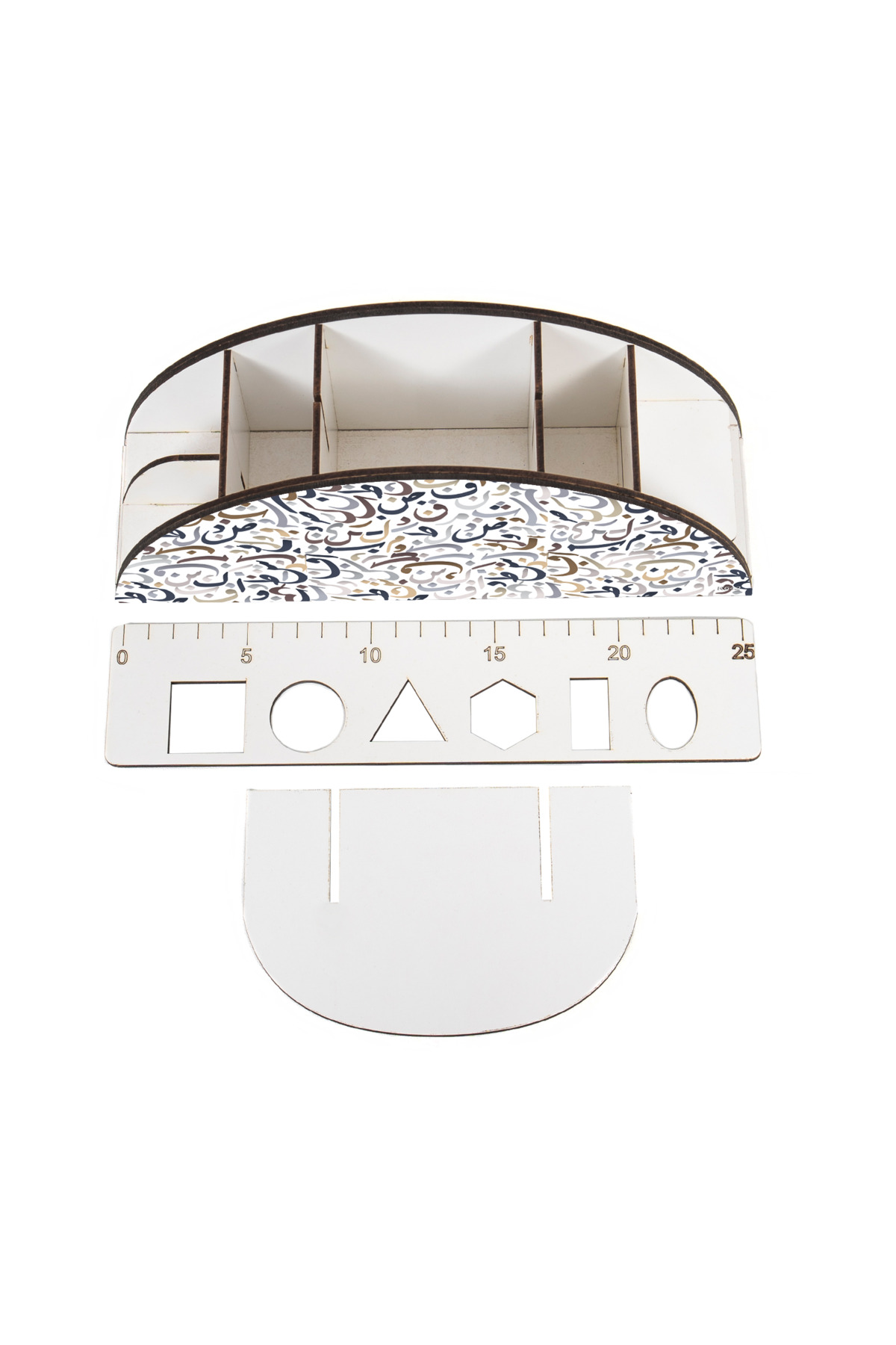 Ahşap VİP İslam Gökkuşağı Cetvelli Masaüstü Kalemlik Organizer Montajlı Kutulu