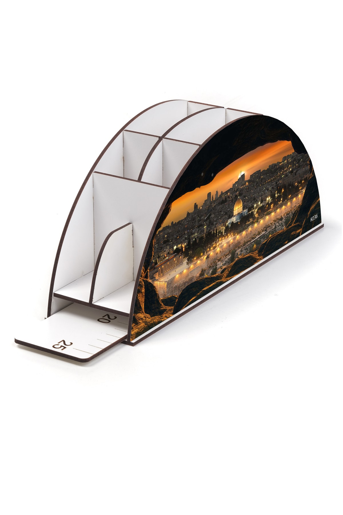 Ahşap Vip Islam Serisi Gökkuşağı Cetvelli Masaüstü Kalemlik Organizer Montajlı Kutulu
