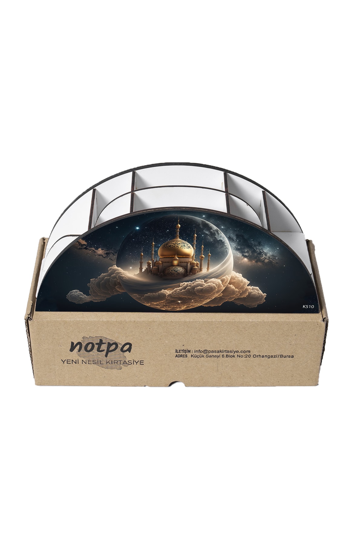Ahşap Vip Islam Ve Bayrak Model Gökkuşağı Cetvelli Masaüstü Kalemlik Organizer Montajlı Kutulu