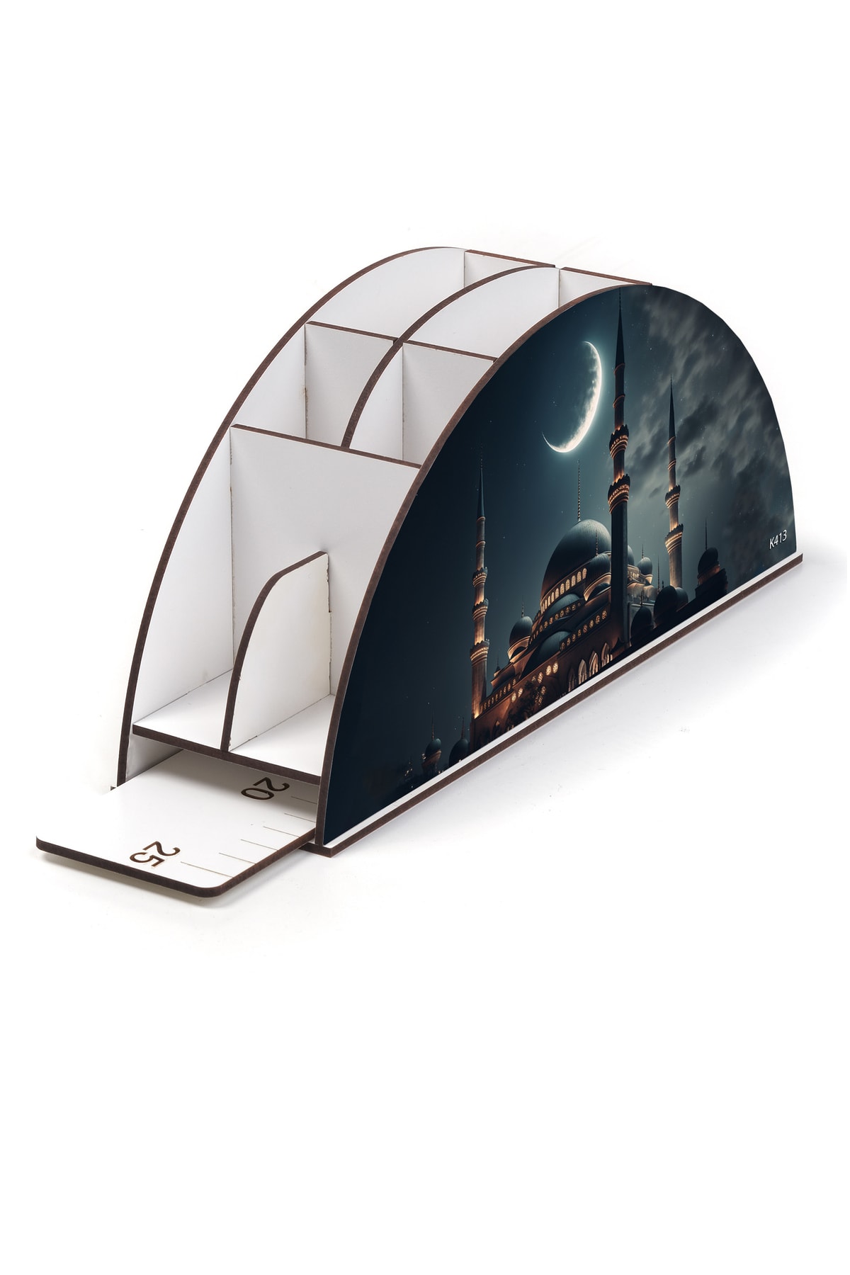 Ahşap Vip Islamiyet Gökkuşağı Cetvelli Masaüstü Kalemlik Organizer Montajlı Kutulu