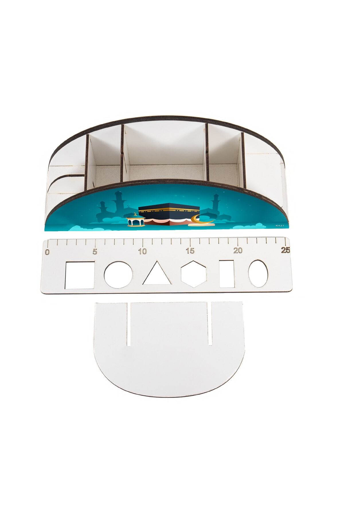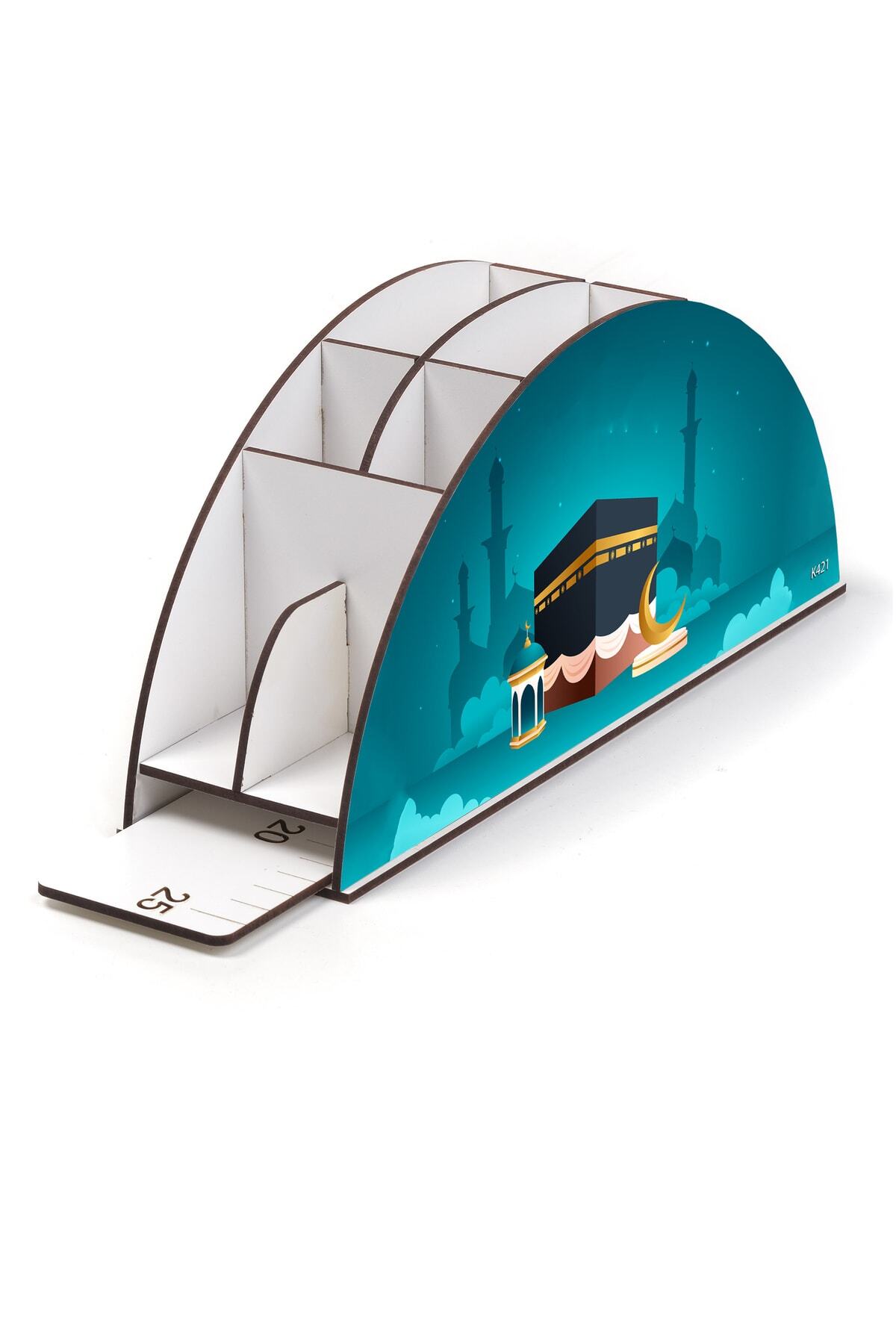 Ahşap Vip Islamiyet Gökkuşağı Cetvelli Masaüstü Kalemlik Organizer Montajlı Kutulu