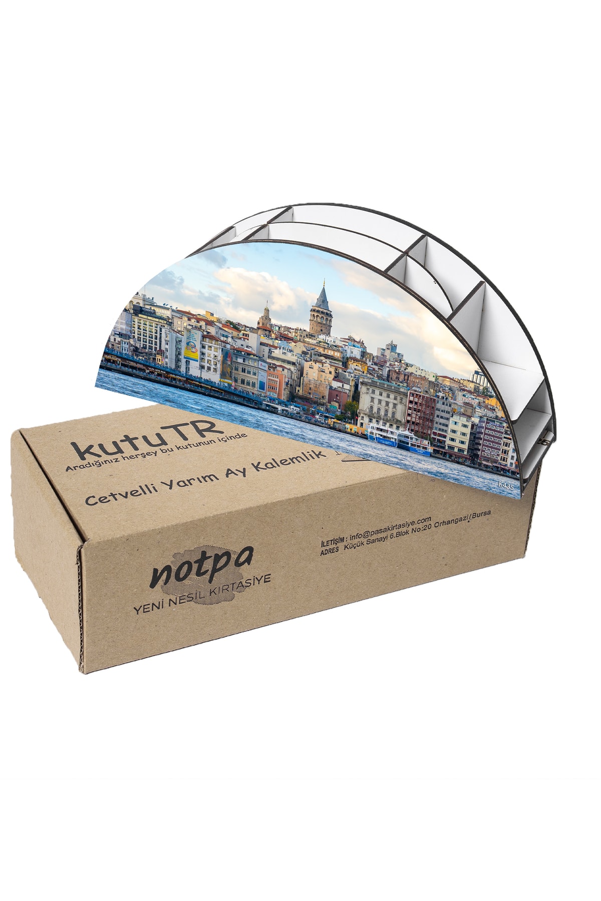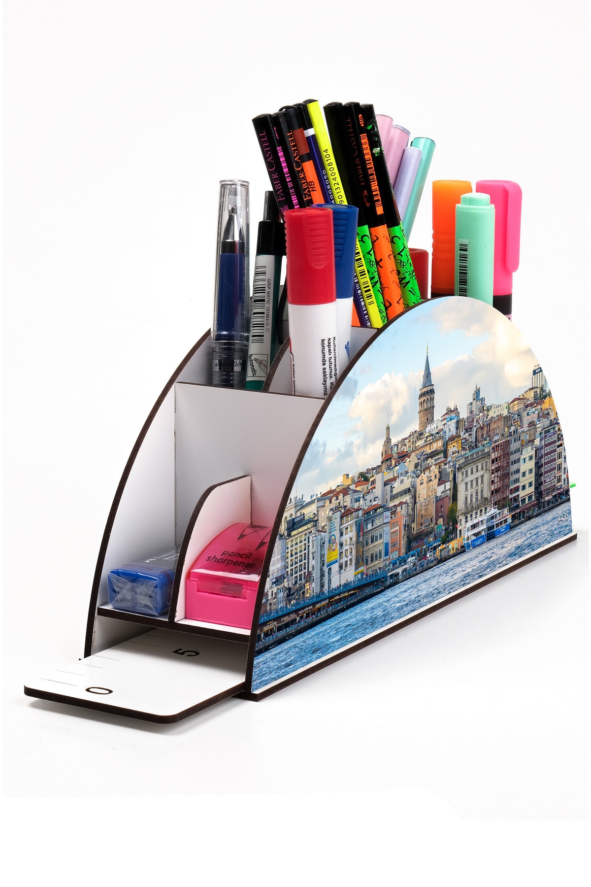 Ahşap Vip Istanbul Model Gökkuşağı Cetvelli Masaüstü Kalemlik Organizer Montajlı Kutulu