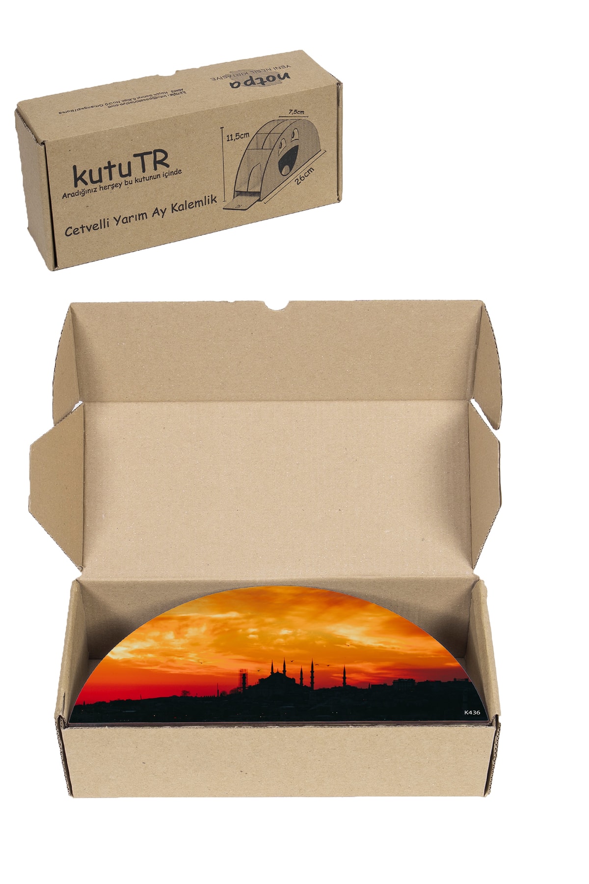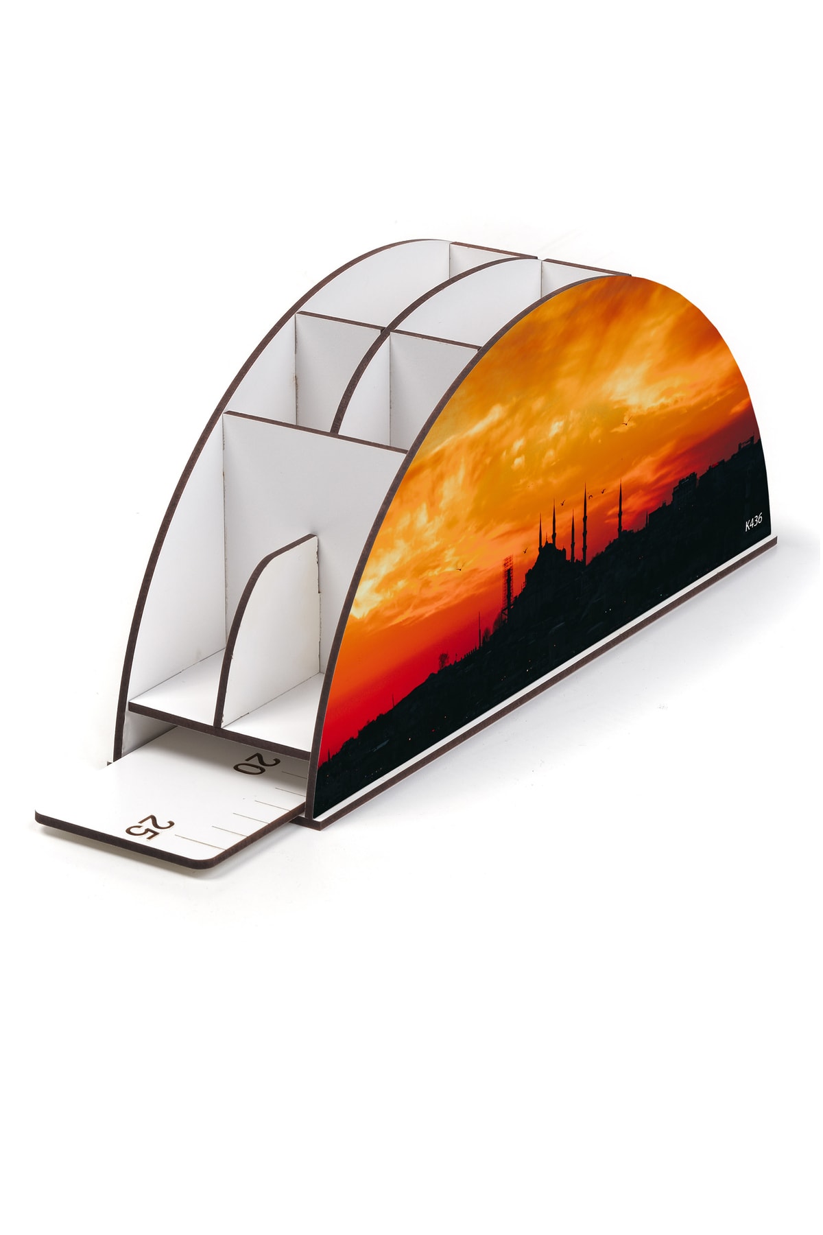 Ahşap Vip Istanbul Model Gökkuşağı Cetvelli Masaüstü Kalemlik Organizer Montajlı Kutulu