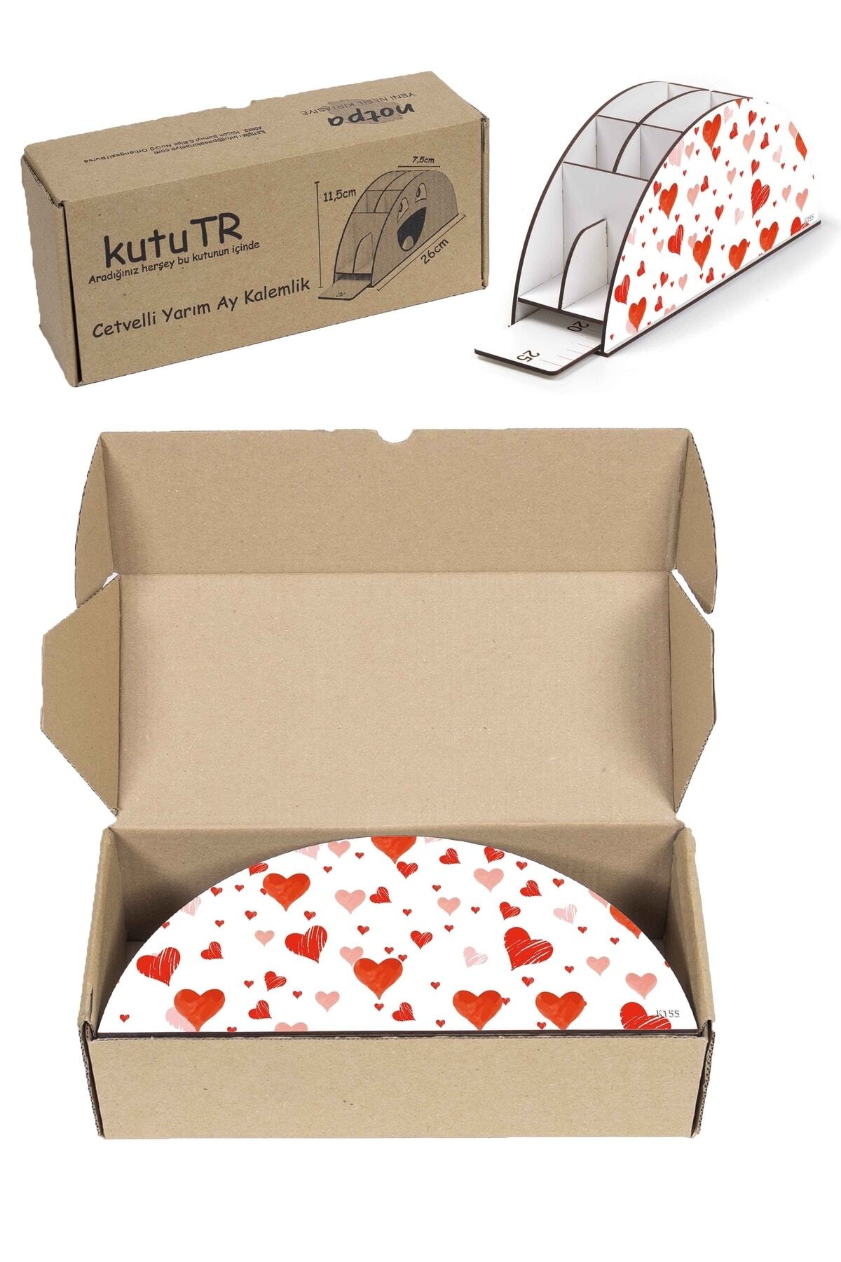 Ahşap Vip Kalpler Seri Gökkuşağı Cetvelli Masaüstü Kalemlik Organizer Montajlı Kutulu