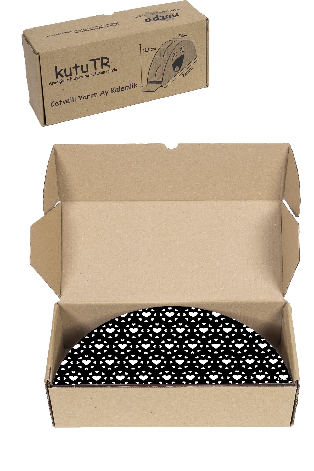 Ahşap Vip Kalpler Seri Gökkuşağı Cetvelli Masaüstü Kalemlik Organizer Montajlı Kutulu