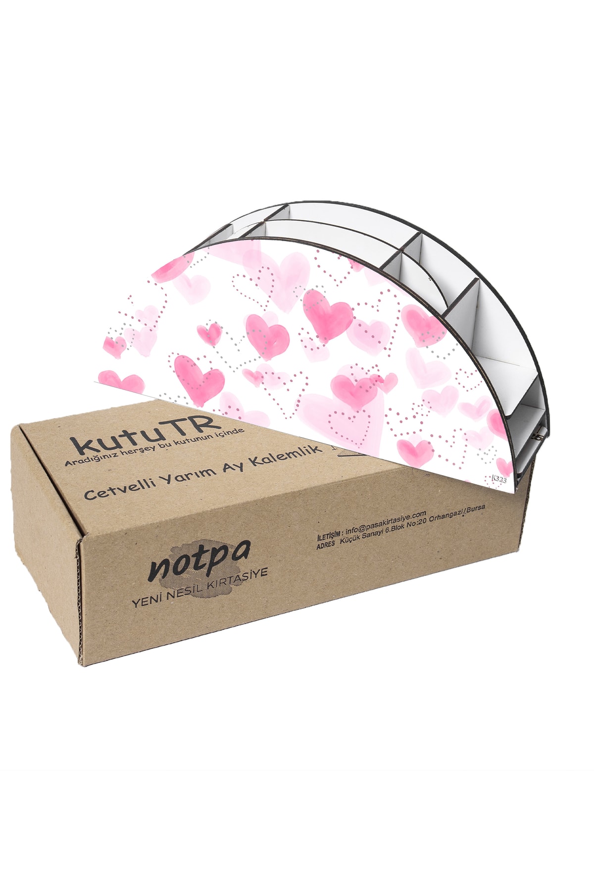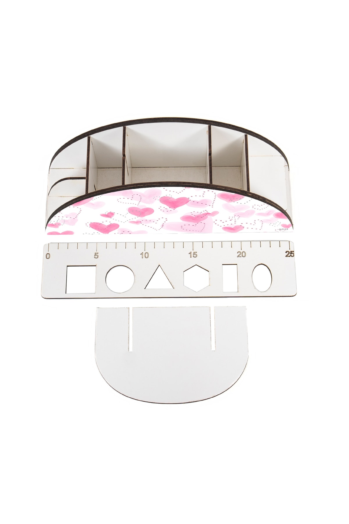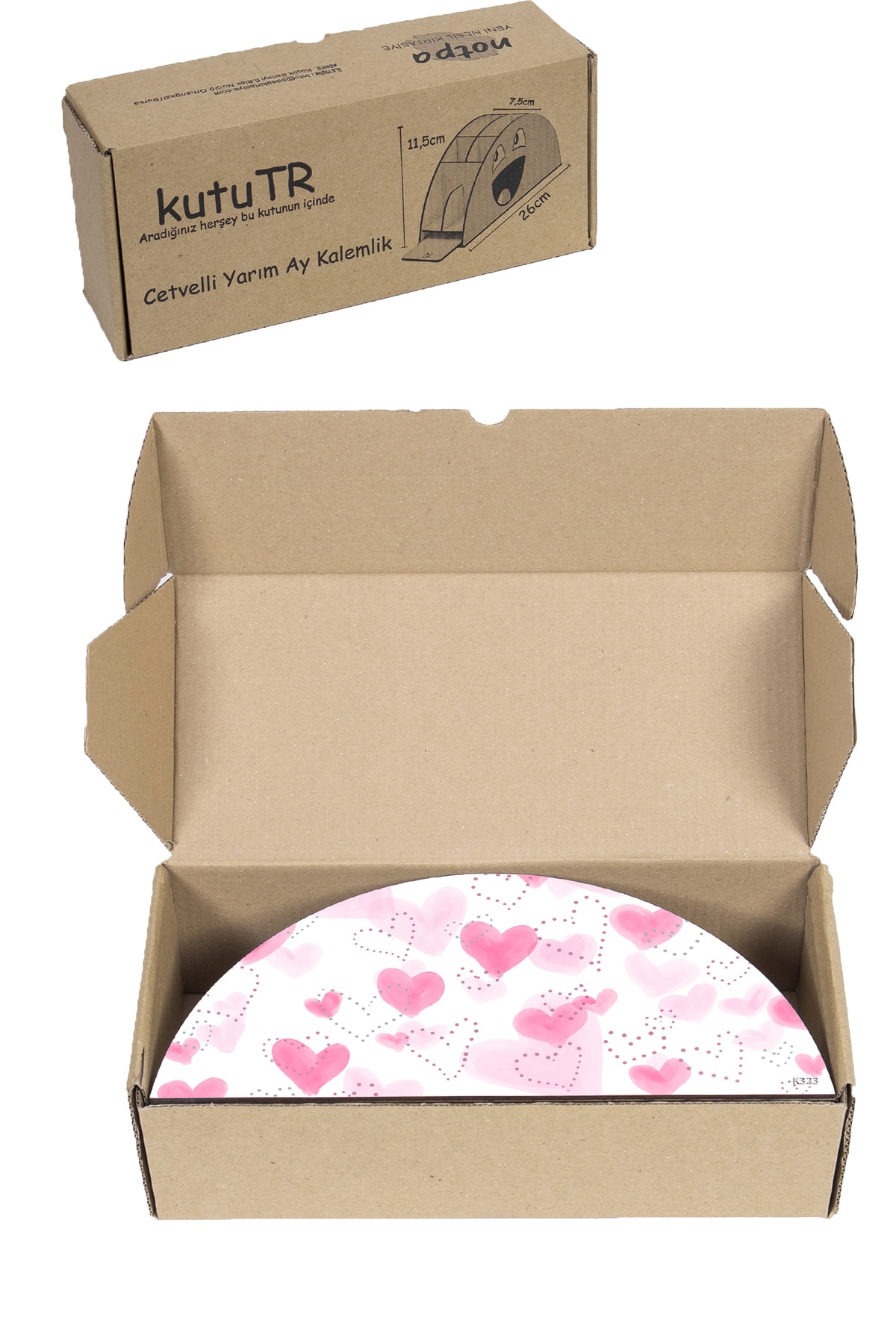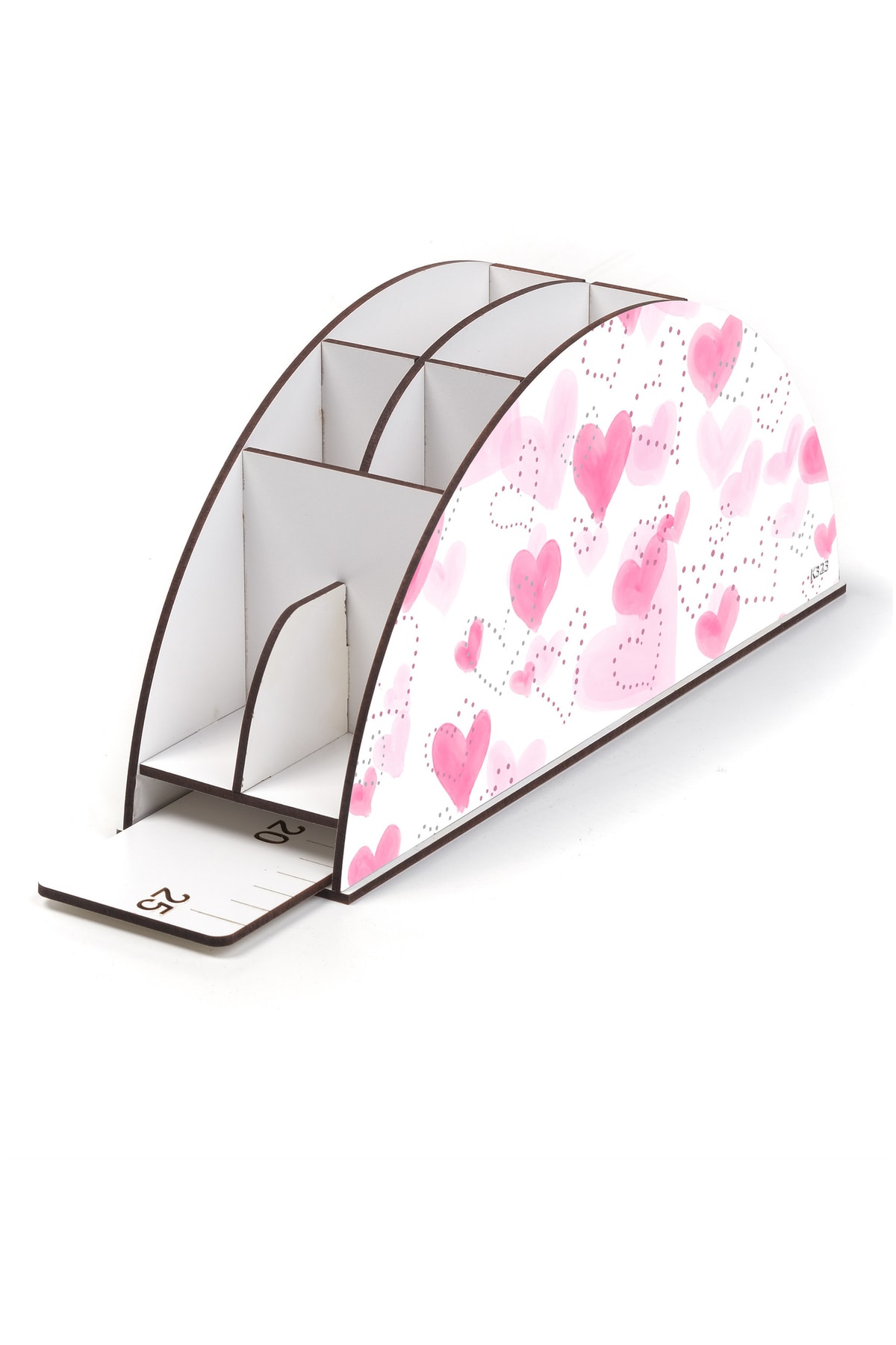 Ahşap Vip Kalpler Seri Gökkuşağı Cetvelli Masaüstü Kalemlik Organizer Montajlı Kutulu