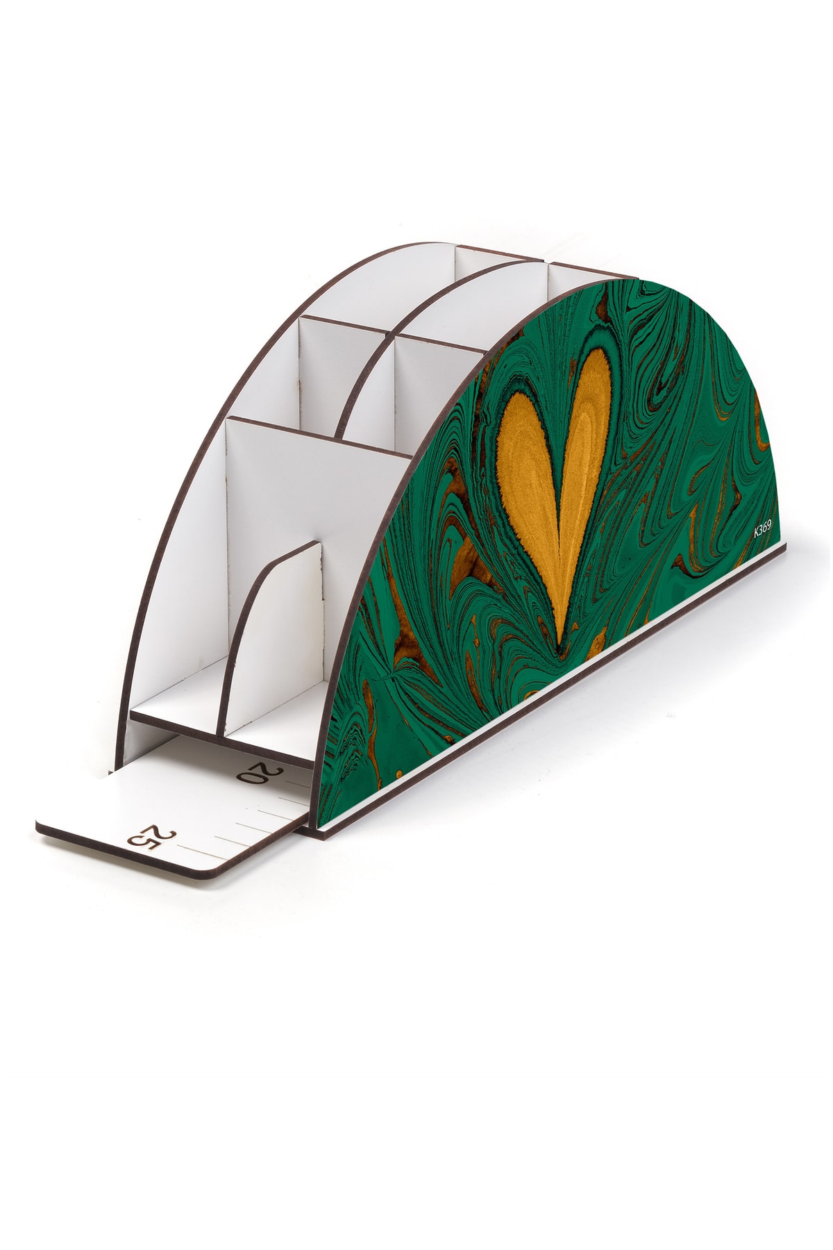 Ahşap Vip Kalpler Seri Gökkuşağı Cetvelli Masaüstü Kalemlik Organizer Montajlı Kutulu