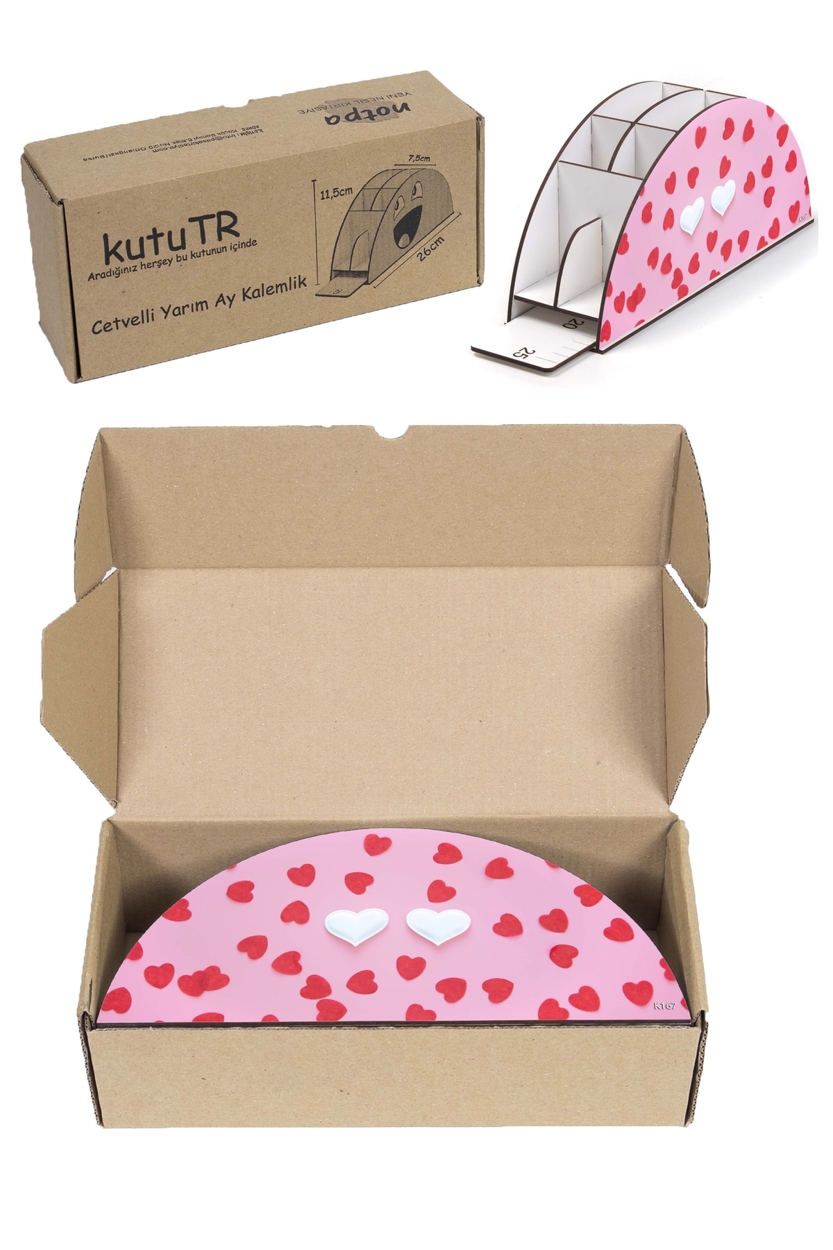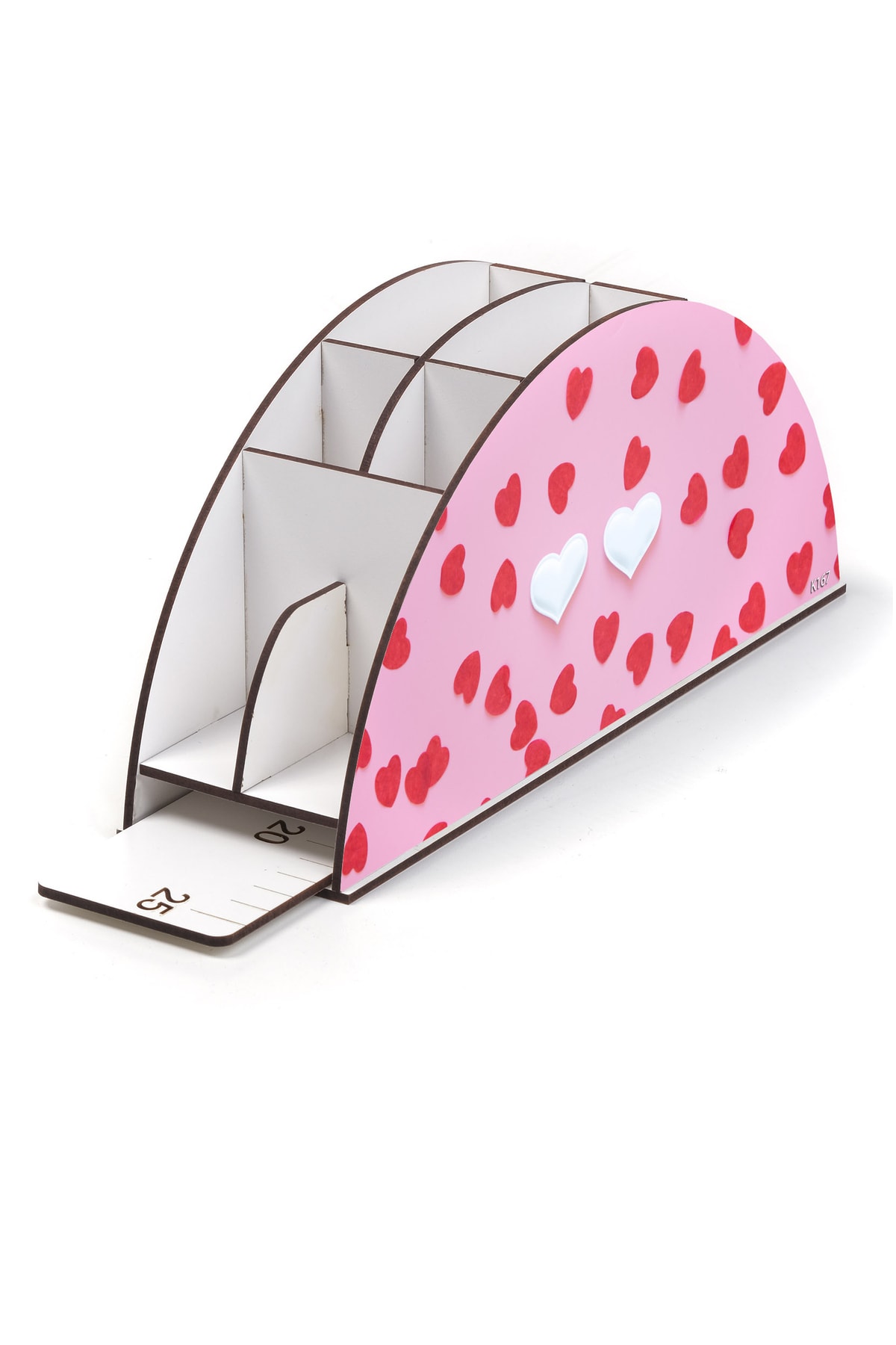 Ahşap Vip Kalpli Gökkuşağı Cetvelli Masaüstü Kalemlik Organizer Vip167