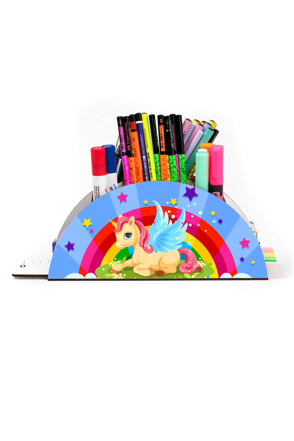 Ahşap Vip Kanatlı Unicorn Gökkuşağı Cetvelli Masaüstü Kalemlik Çocuklar Için Organizer Vip25