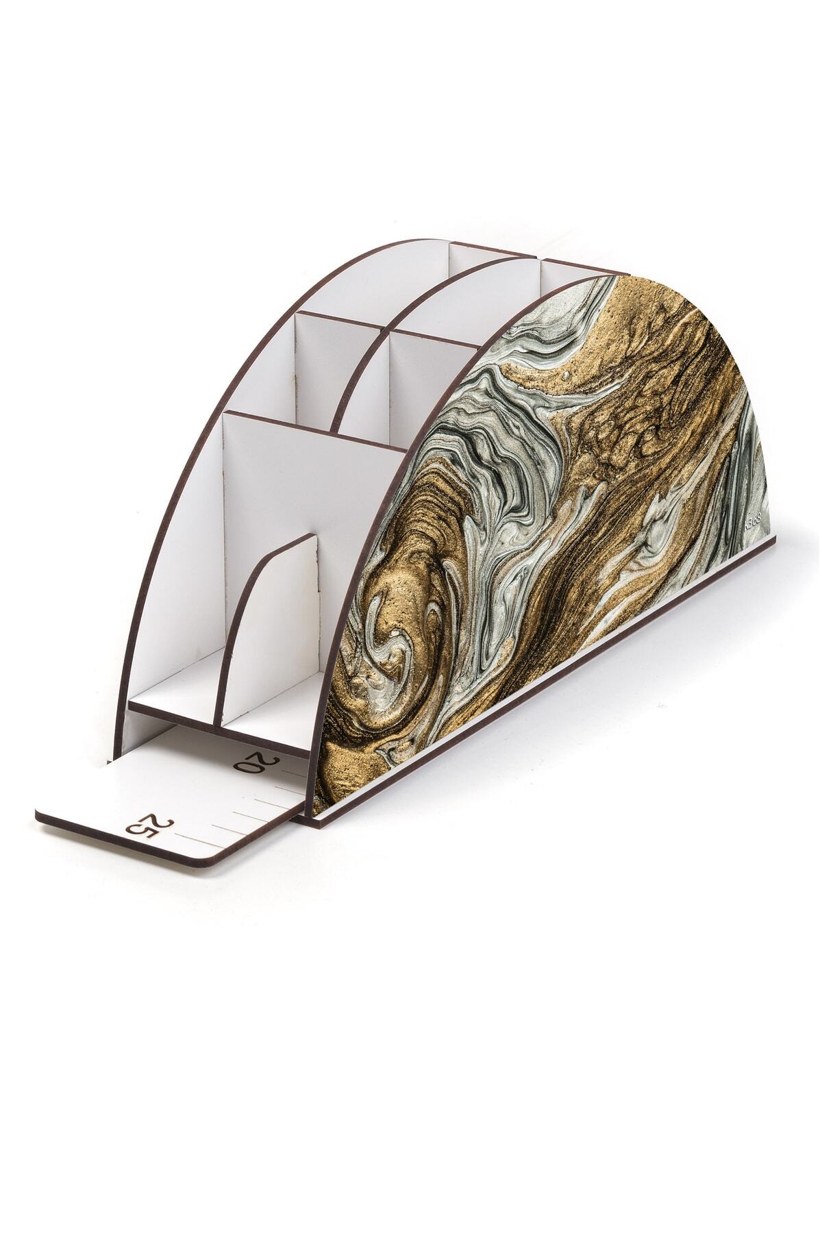 Ahşap Vip Karışık Gökkuşağı Cetvelli Masaüstü Kalemlik Organizer Montajlı Kutulu