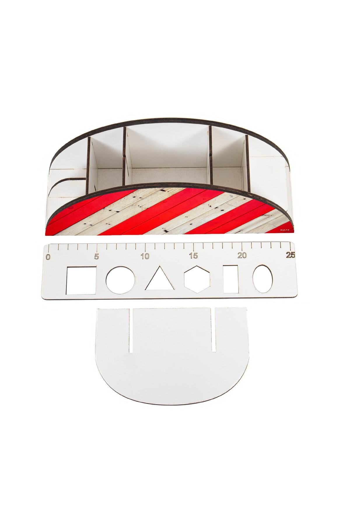 Ahşap Vip Karışık Gökkuşağı Cetvelli Masaüstü Kalemlik Organizer Montajlı Kutulu
