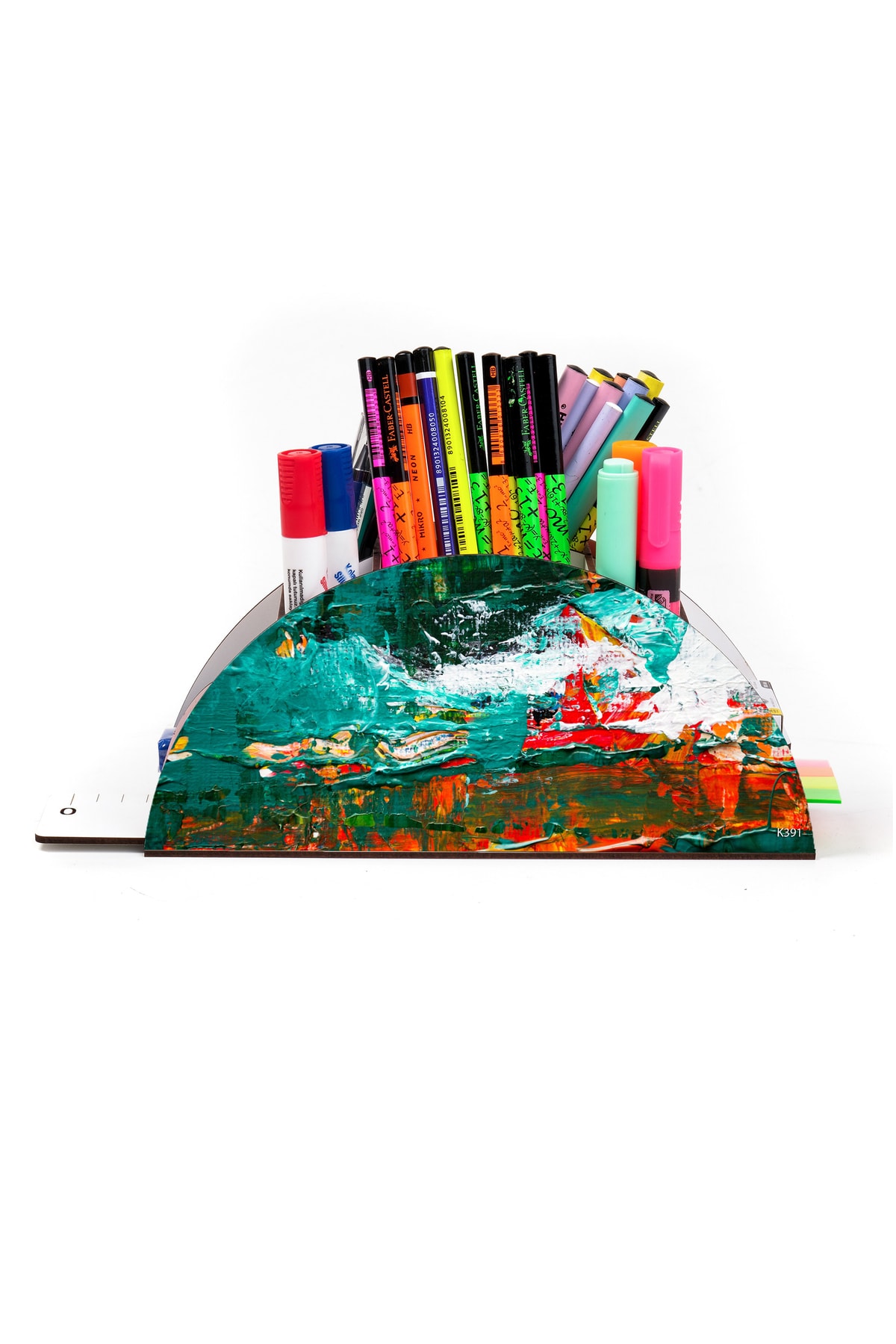 Ahşap Vip Karışık Gökkuşağı Cetvelli Masaüstü Kalemlik Organizer Montajlı Kutulu