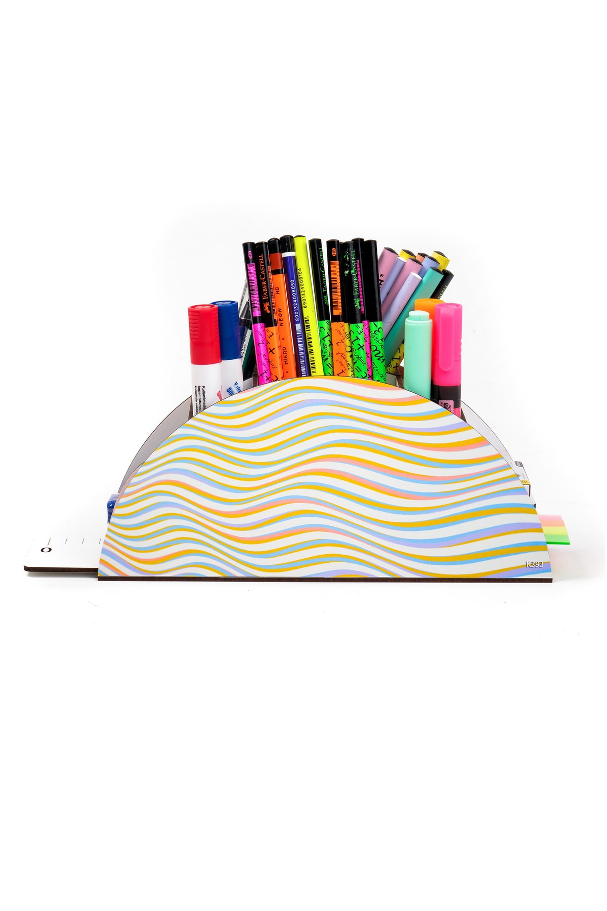 Ahşap Vip Karışık Gökkuşağı Cetvelli Masaüstü Kalemlik Organizer Montajlı Kutulu