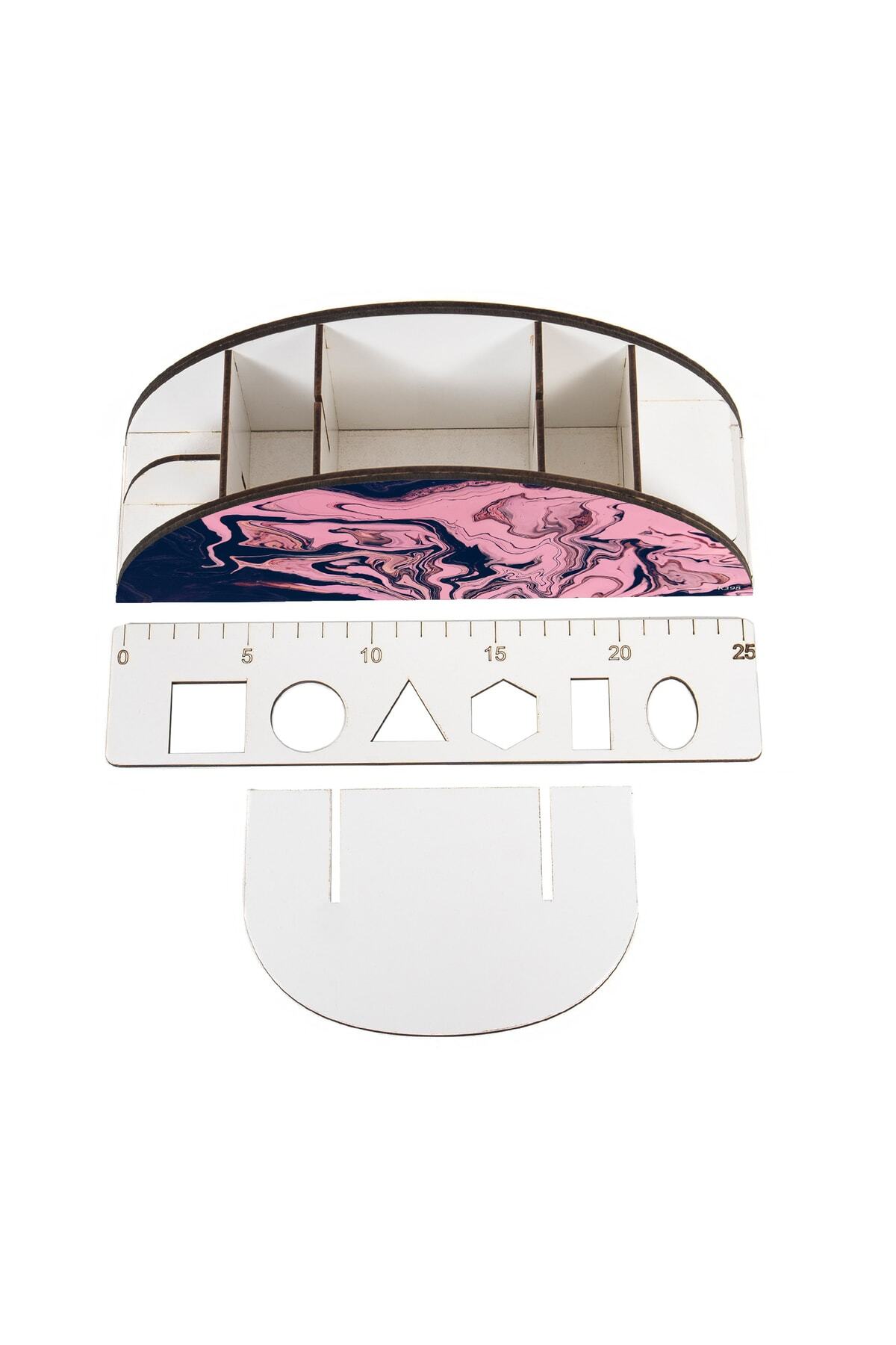 Ahşap Vip Karışık Gökkuşağı Cetvelli Masaüstü Kalemlik Organizer Montajlı Kutulu