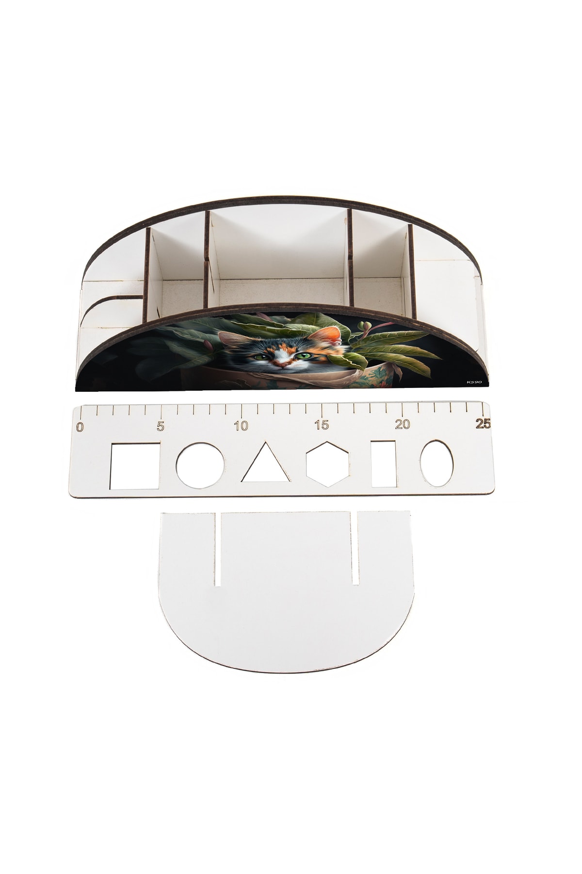Ahşap Vip Köpek Ve Kedi Model Gökkuşağı Cetvelli Masaüstü Kalemlik Organizer Montajlı Kutulu