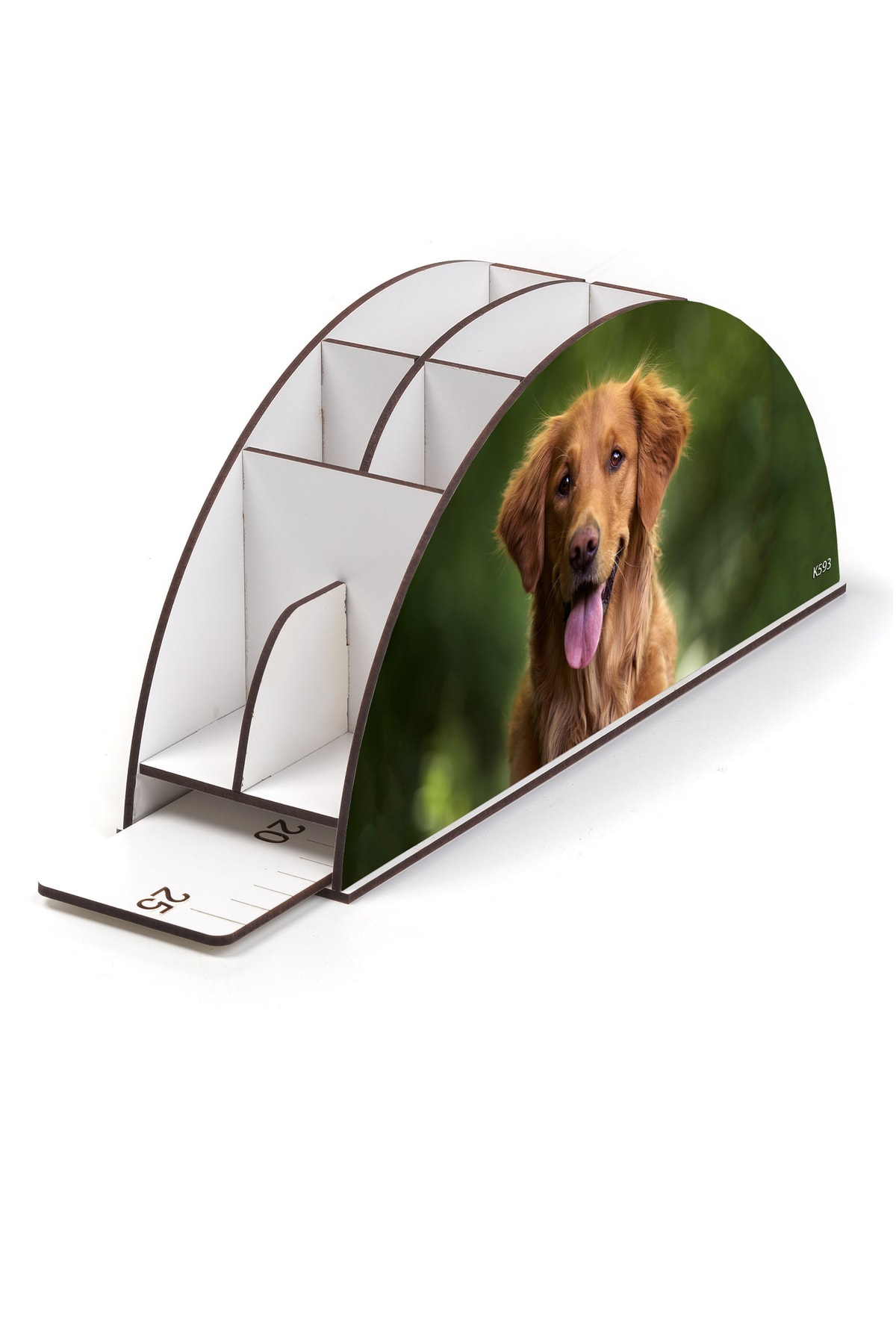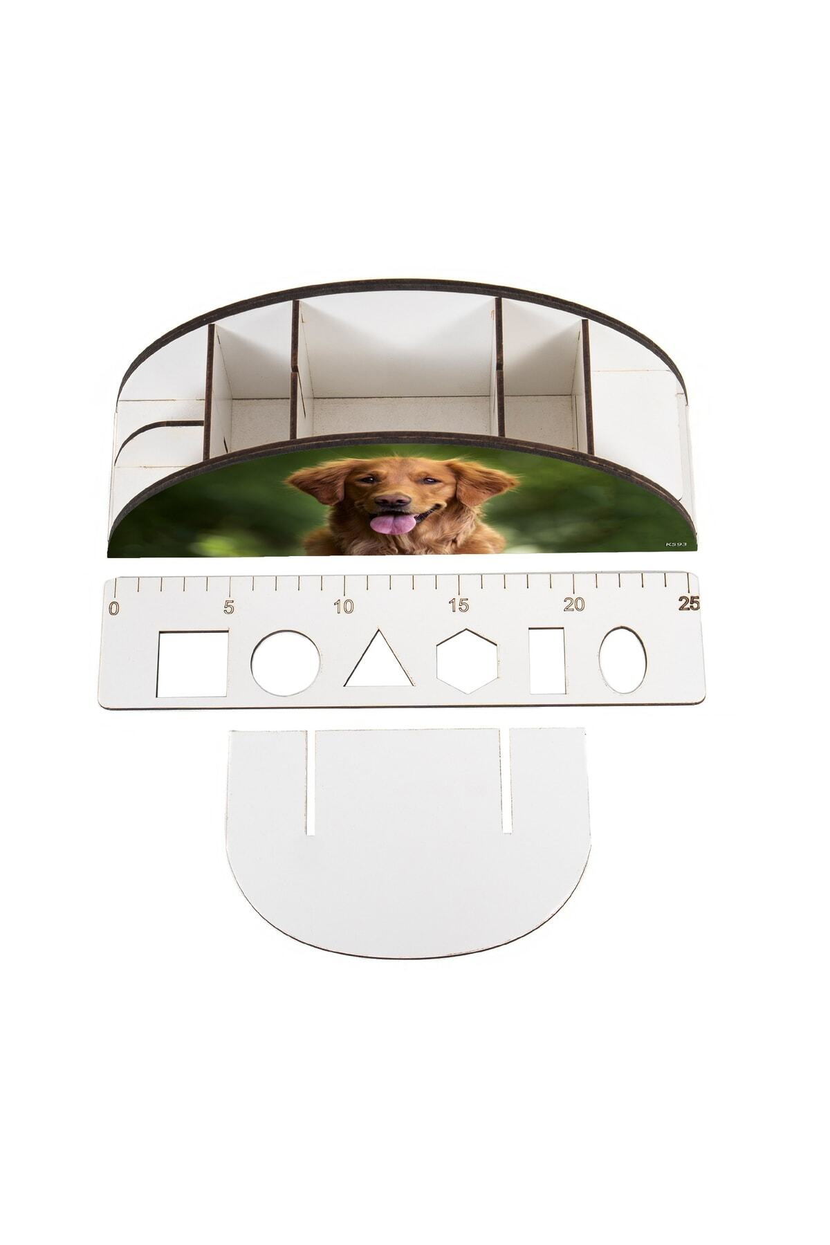 Ahşap Vip Köpek Ve Kedi Model Gökkuşağı Cetvelli Masaüstü Kalemlik Organizer Montajlı Kutulu