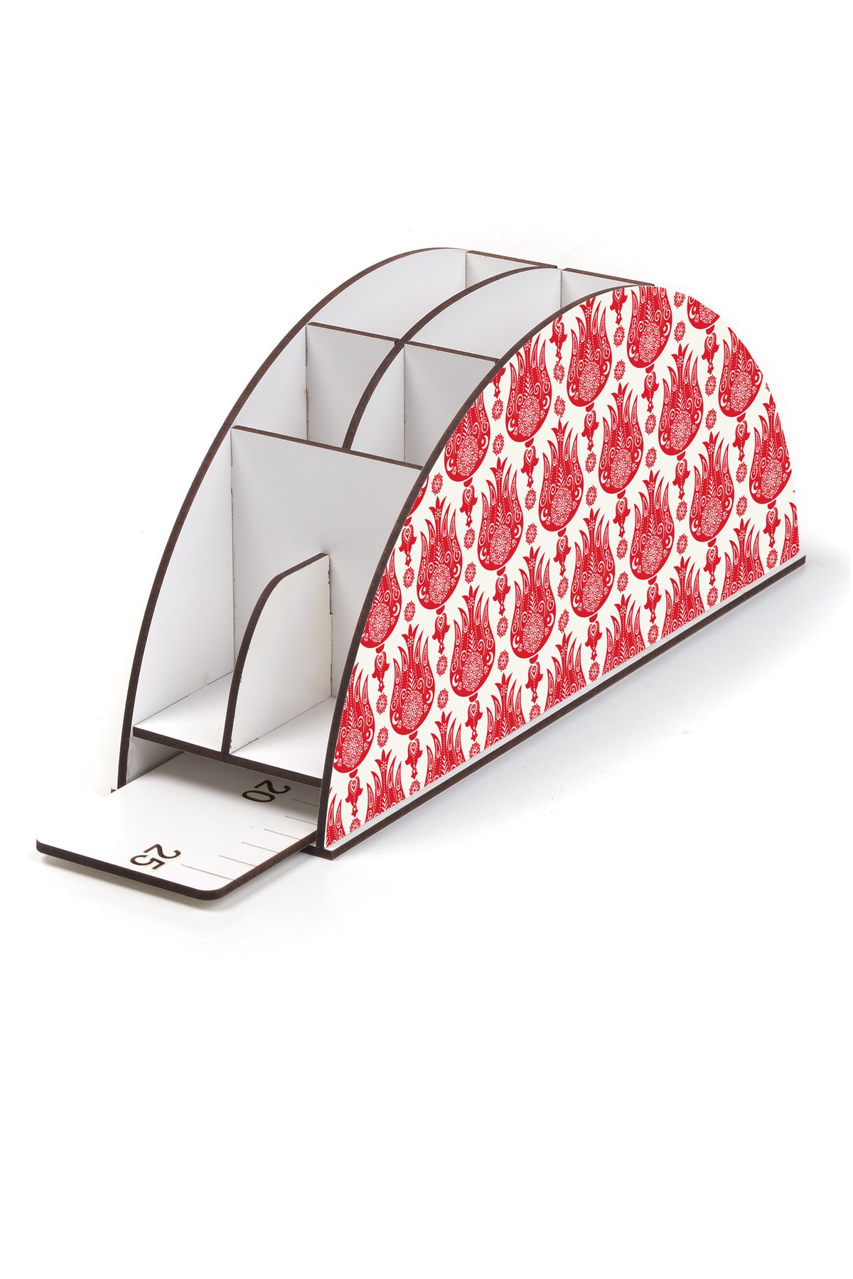Ahşap Vip Lale Desenli Gökkuşağı Cetvelli Masaüstü Kalemlik Organizer Vip38