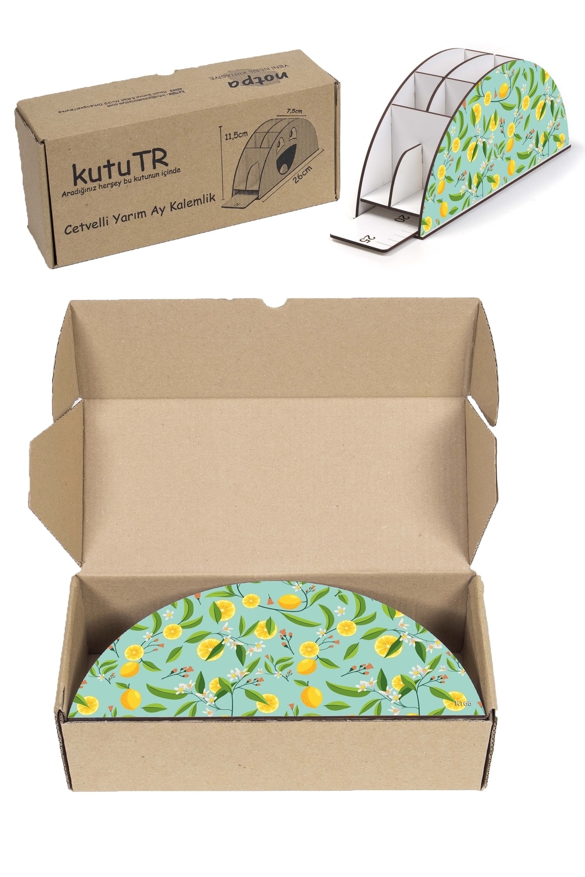 Ahşap Vip Limon Gökkuşağı Cetvelli Masaüstü Kalemlik Organizer Vip166