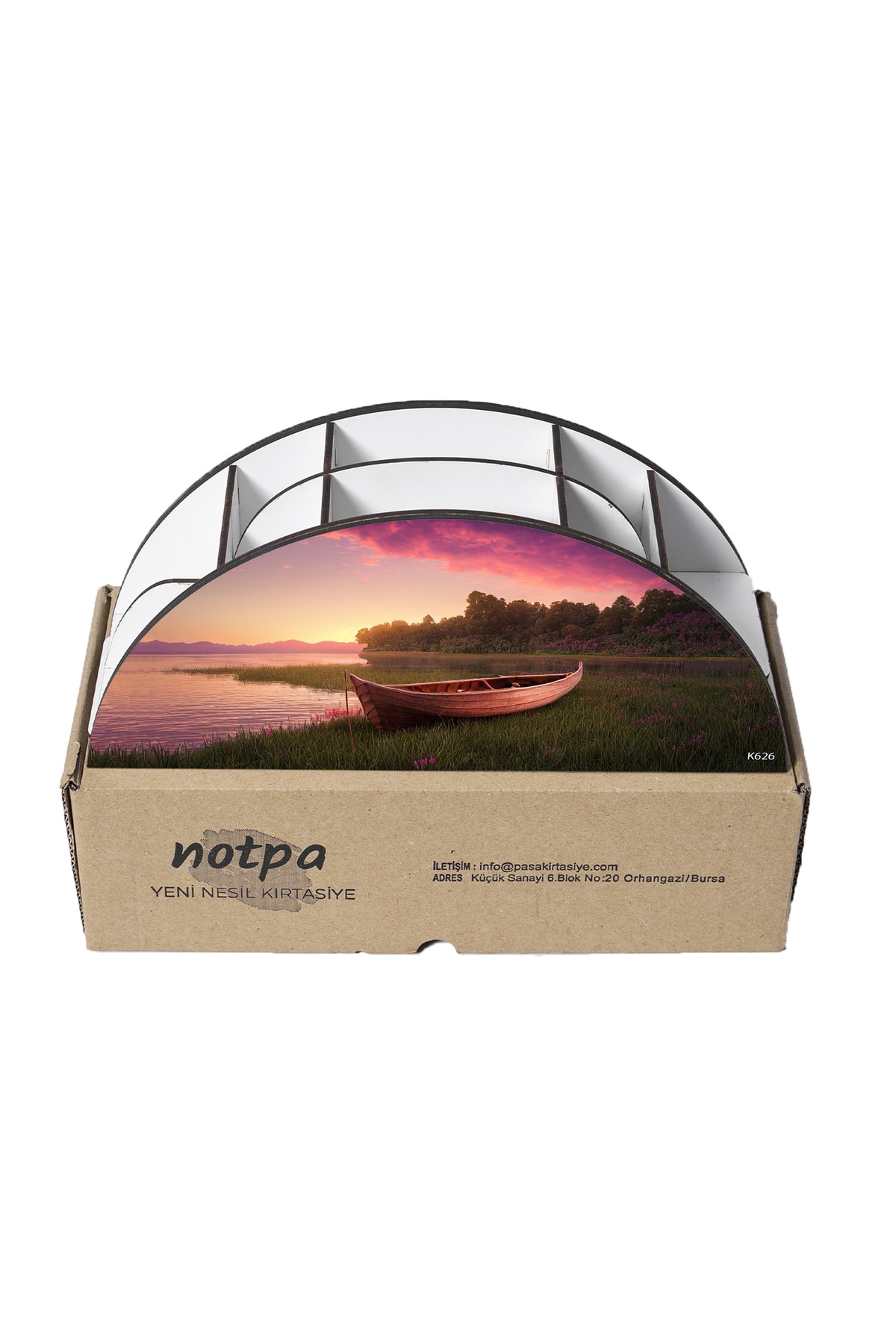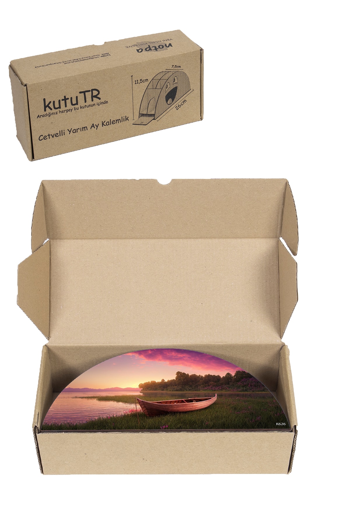 Ahşap Vip Manzara Gökkuşağı Cetvelli Masaüstü Kalemlik Organizer Montajlı Kutulu