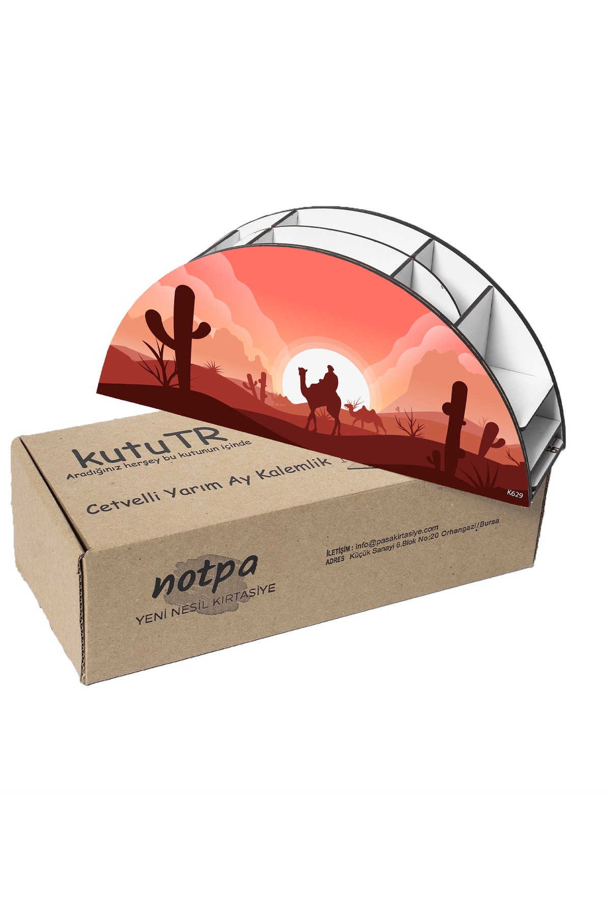 Ahşap Vip Manzara Gökkuşağı Cetvelli Masaüstü Kalemlik Organizer Montajlı Kutulu