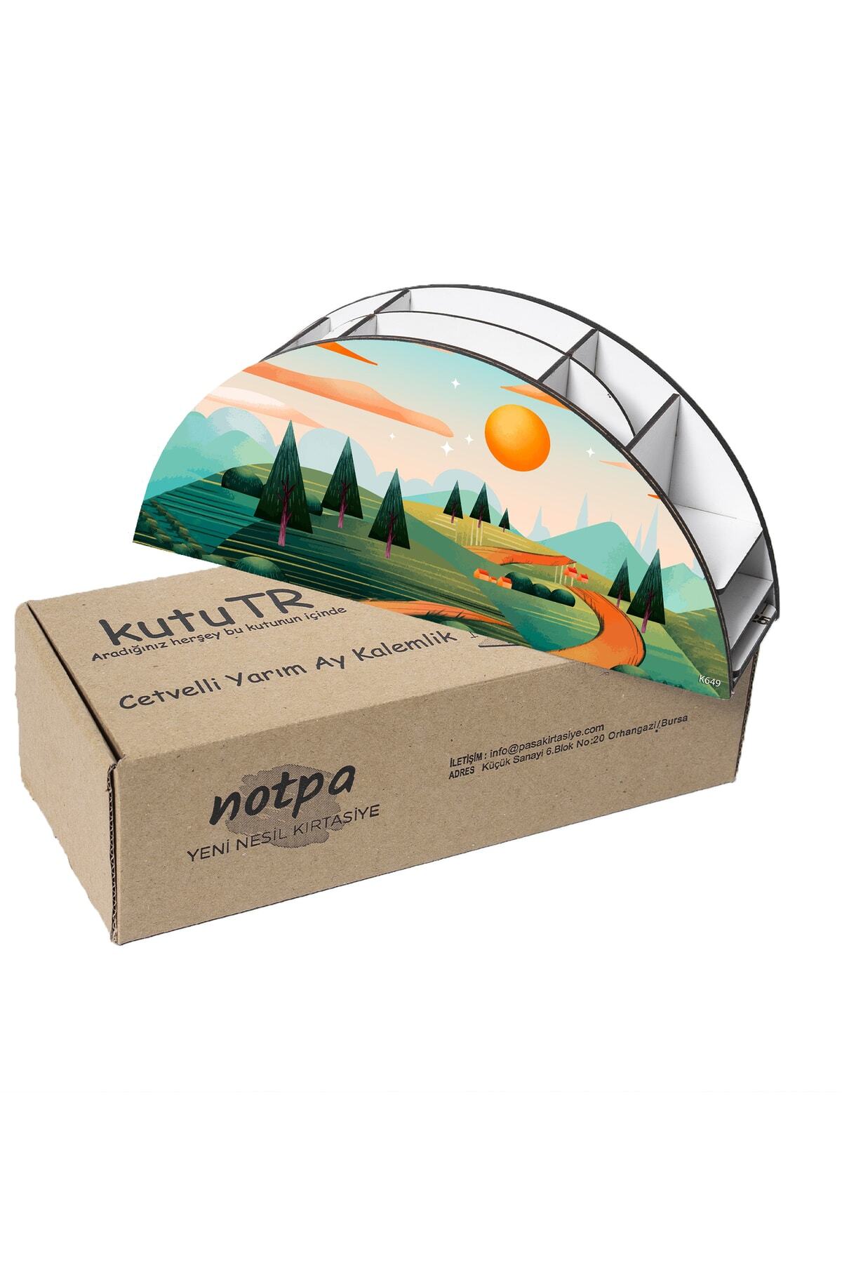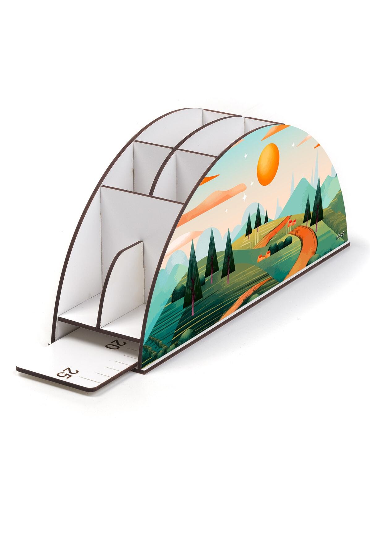 Ahşap Vip Manzara Gökkuşağı Cetvelli Masaüstü Kalemlik Organizer Montajlı Kutulu
