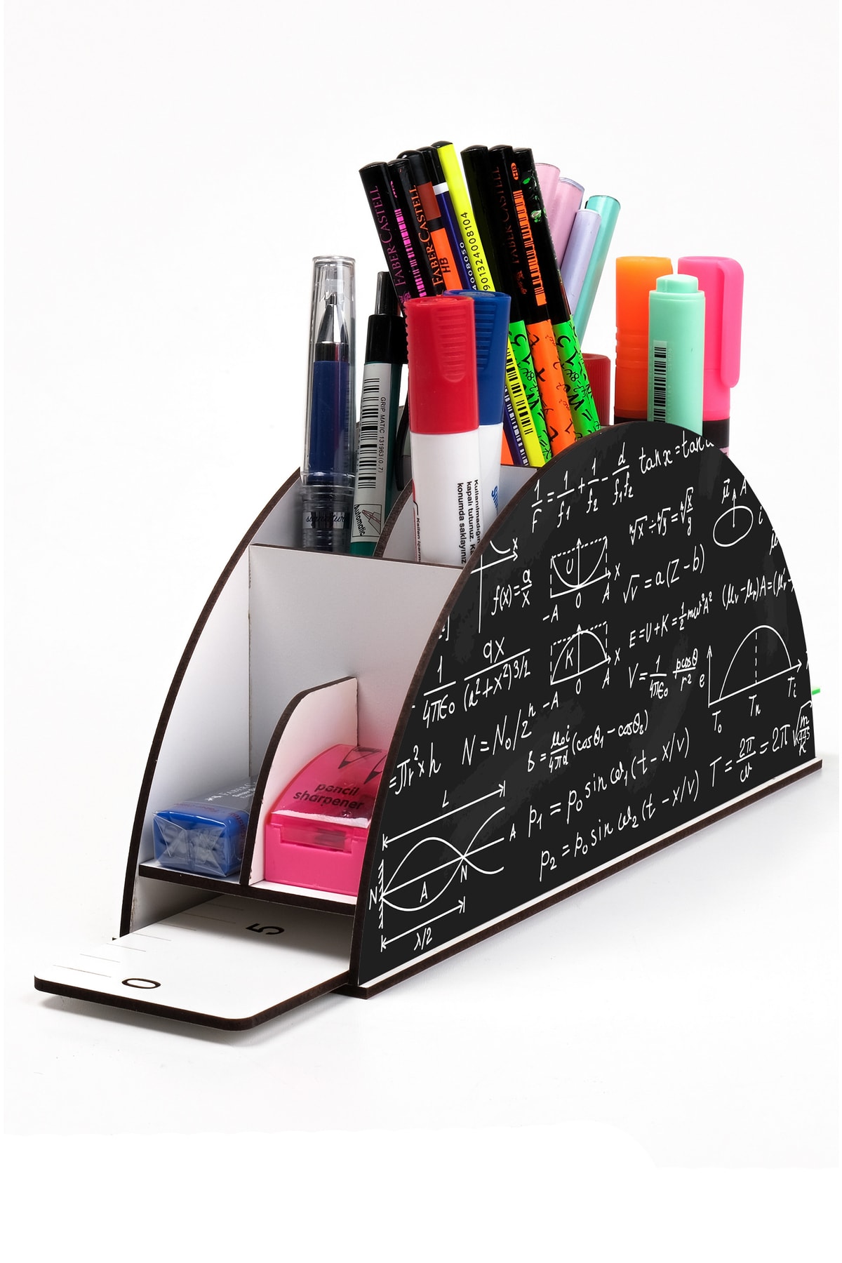 Ahşap Vip Matematik Model Gökkuşağı Cetvelli Masaüstü Kalemlik Organizer Montajlı Kutulu