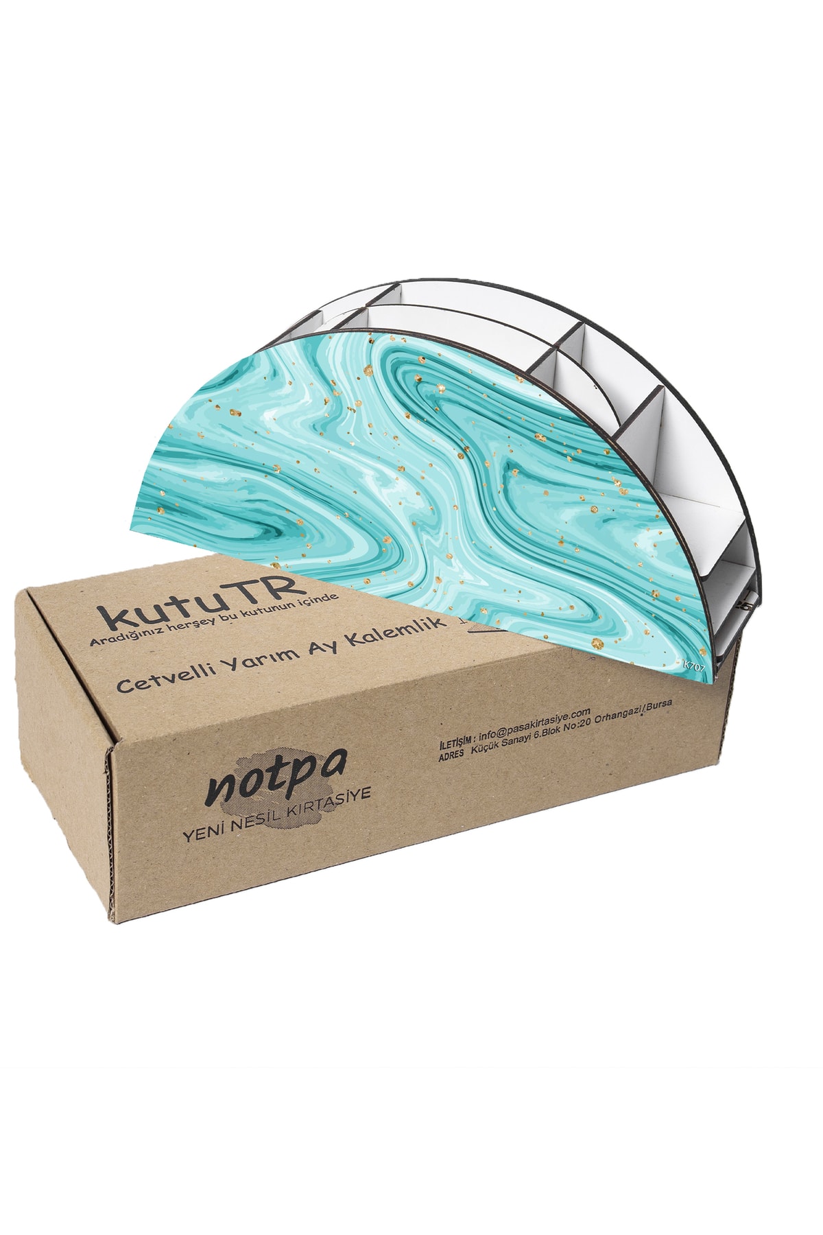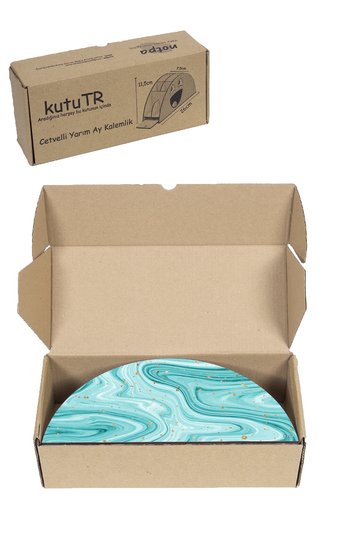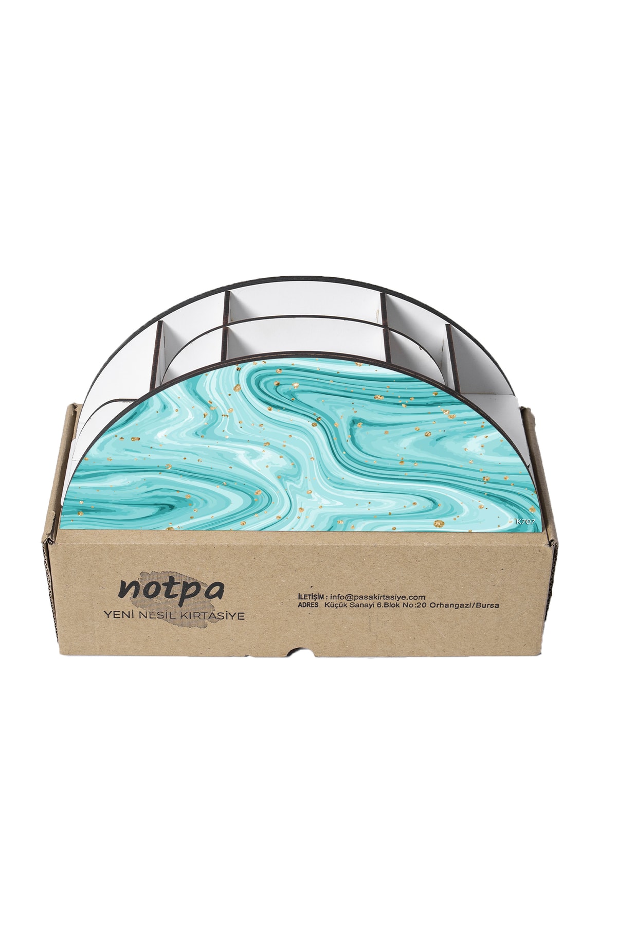 Ahşap Vip Mermer Serisi Gökkuşağı Cetvelli Masaüstü Kalemlik Organizer Montajlı Kutulu