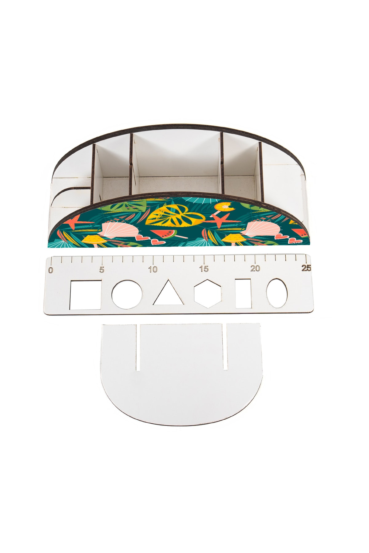 Ahşap Vip Meyve Desenli Gökkuşağı Cetvelli Masaüstü Kalemlik Organizer Vip148