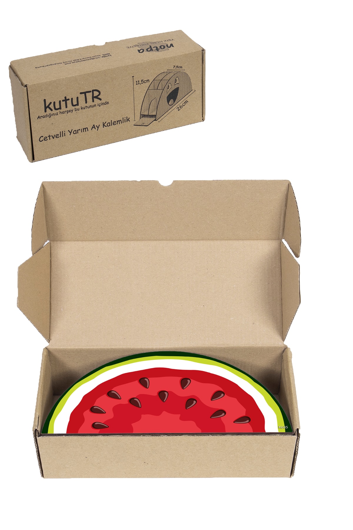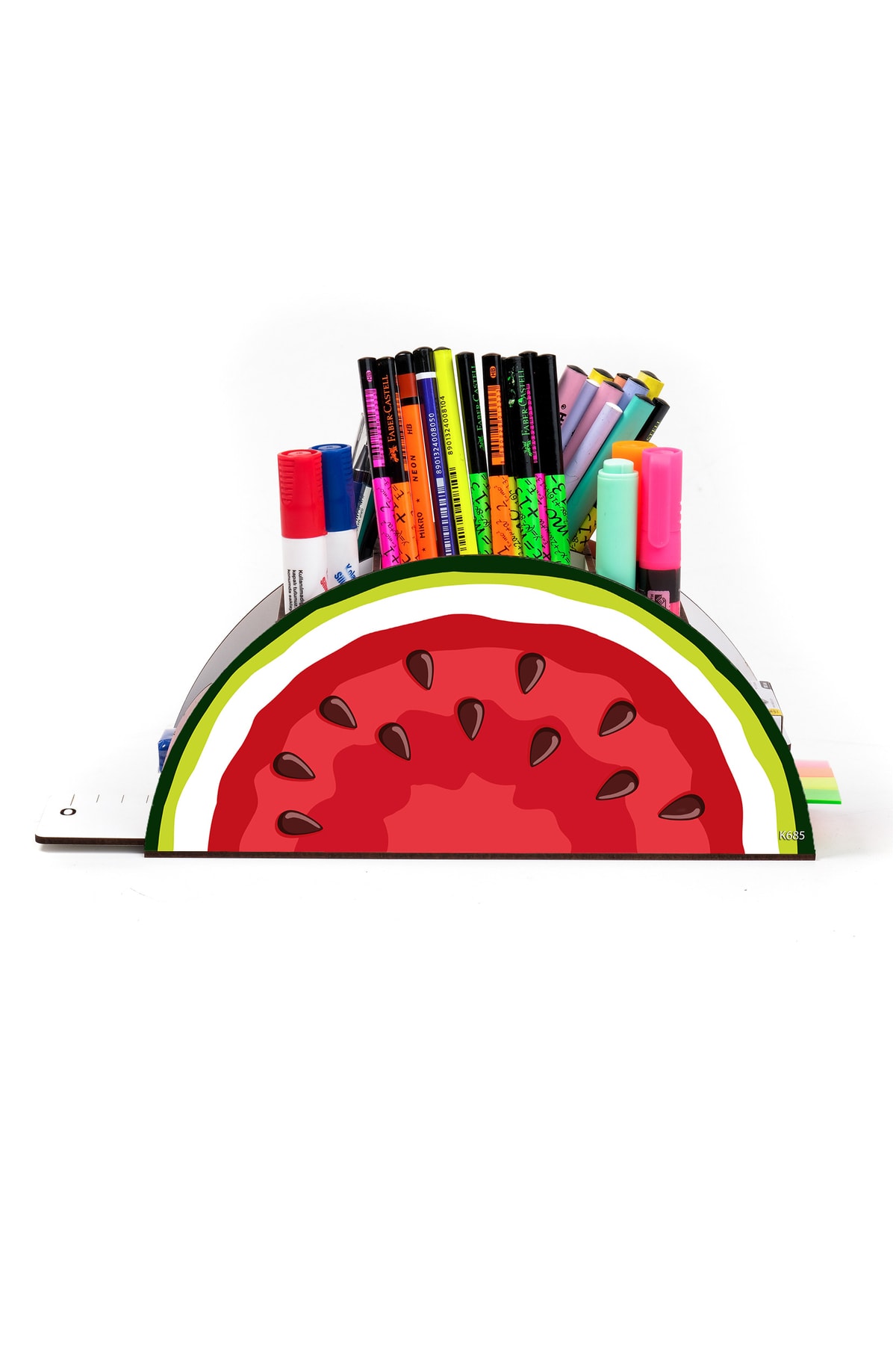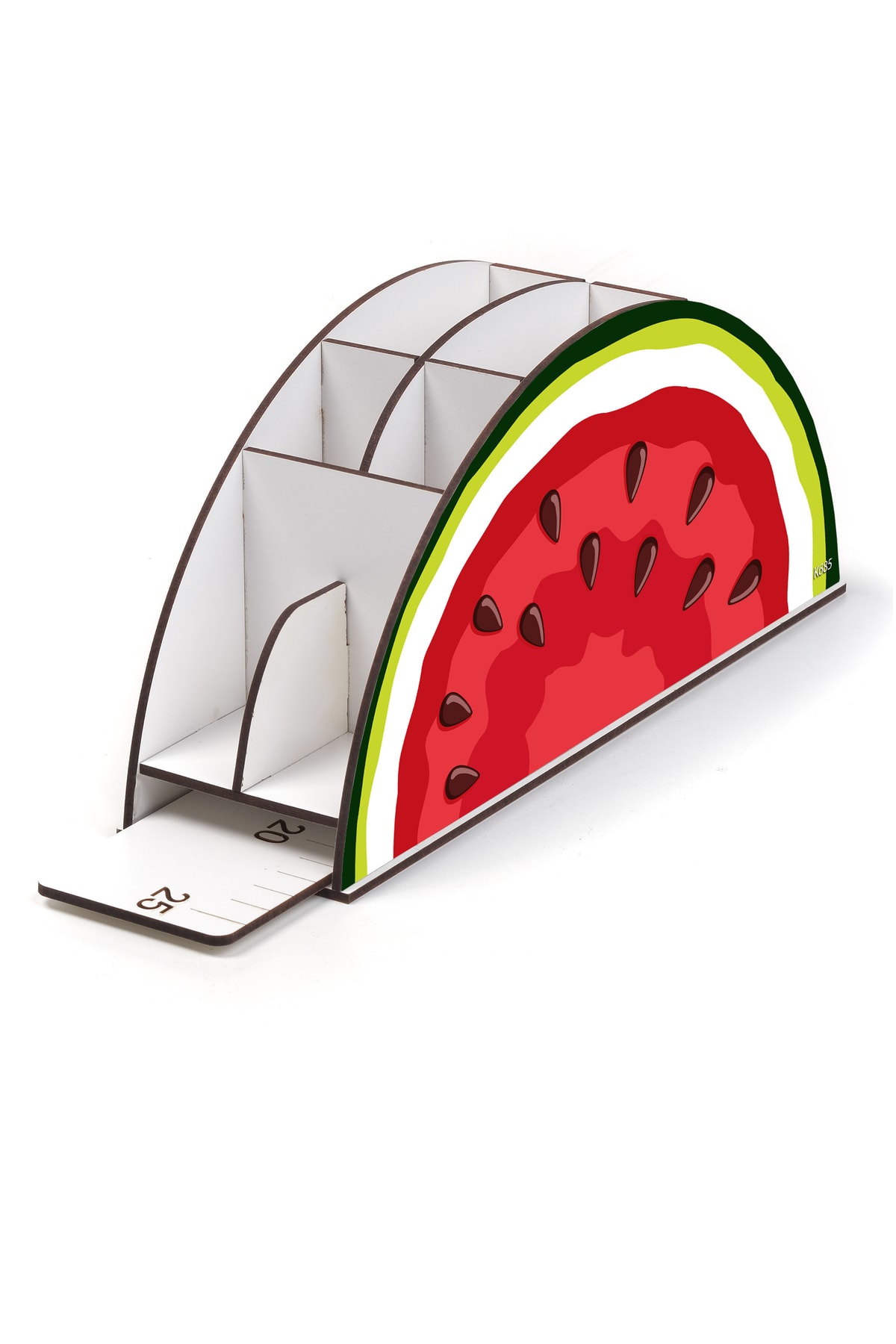 Ahşap Vip Meyve Serisi Gökkuşağı Cetvelli Masaüstü Kalemlik Organizer Montajlı Kutulu
