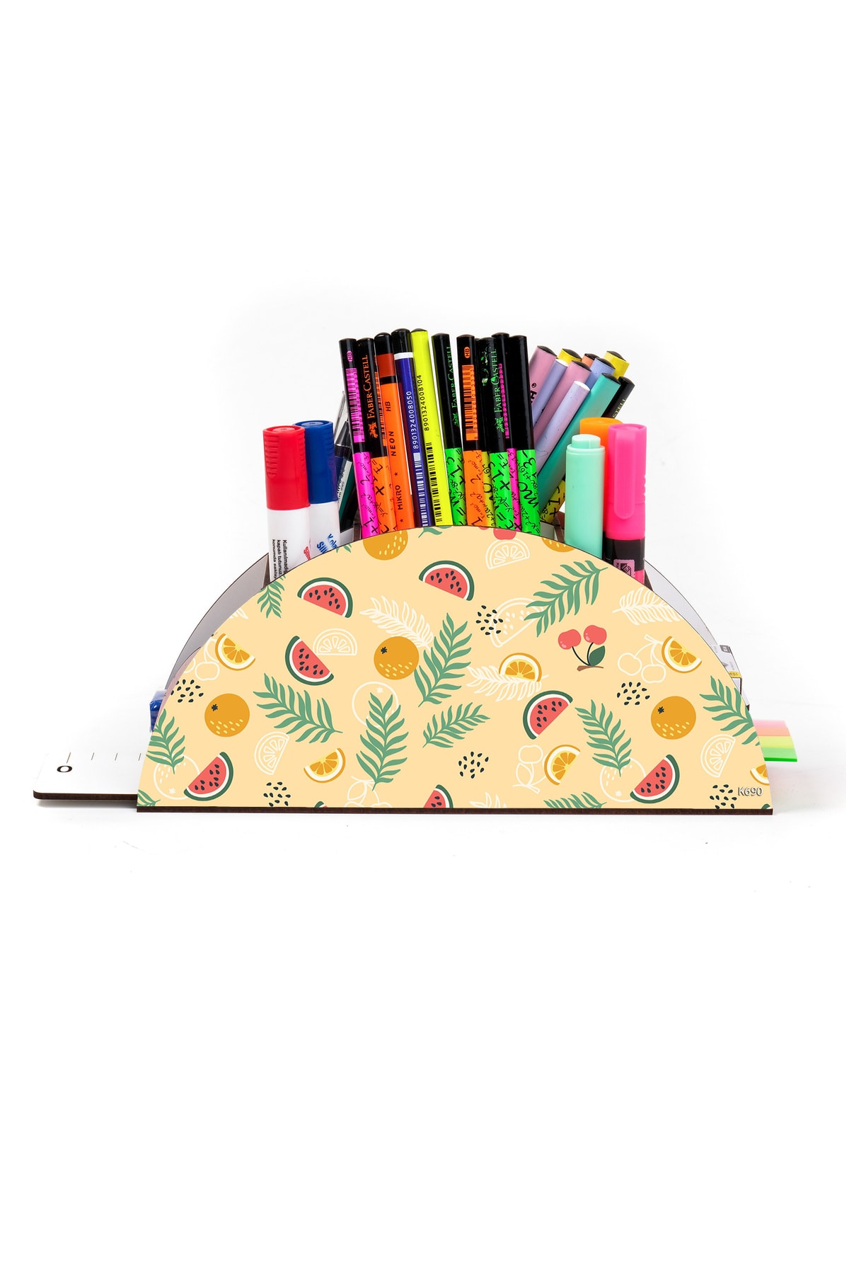 Ahşap Vip Meyve Serisi Gökkuşağı Cetvelli Masaüstü Kalemlik Organizer Montajlı Kutulu