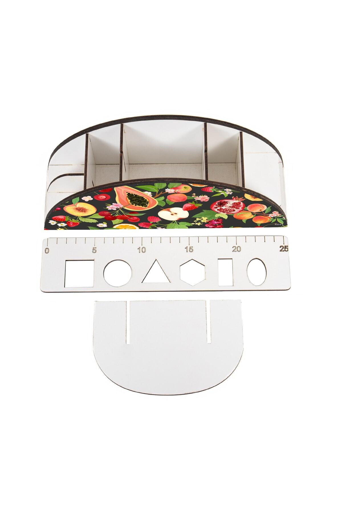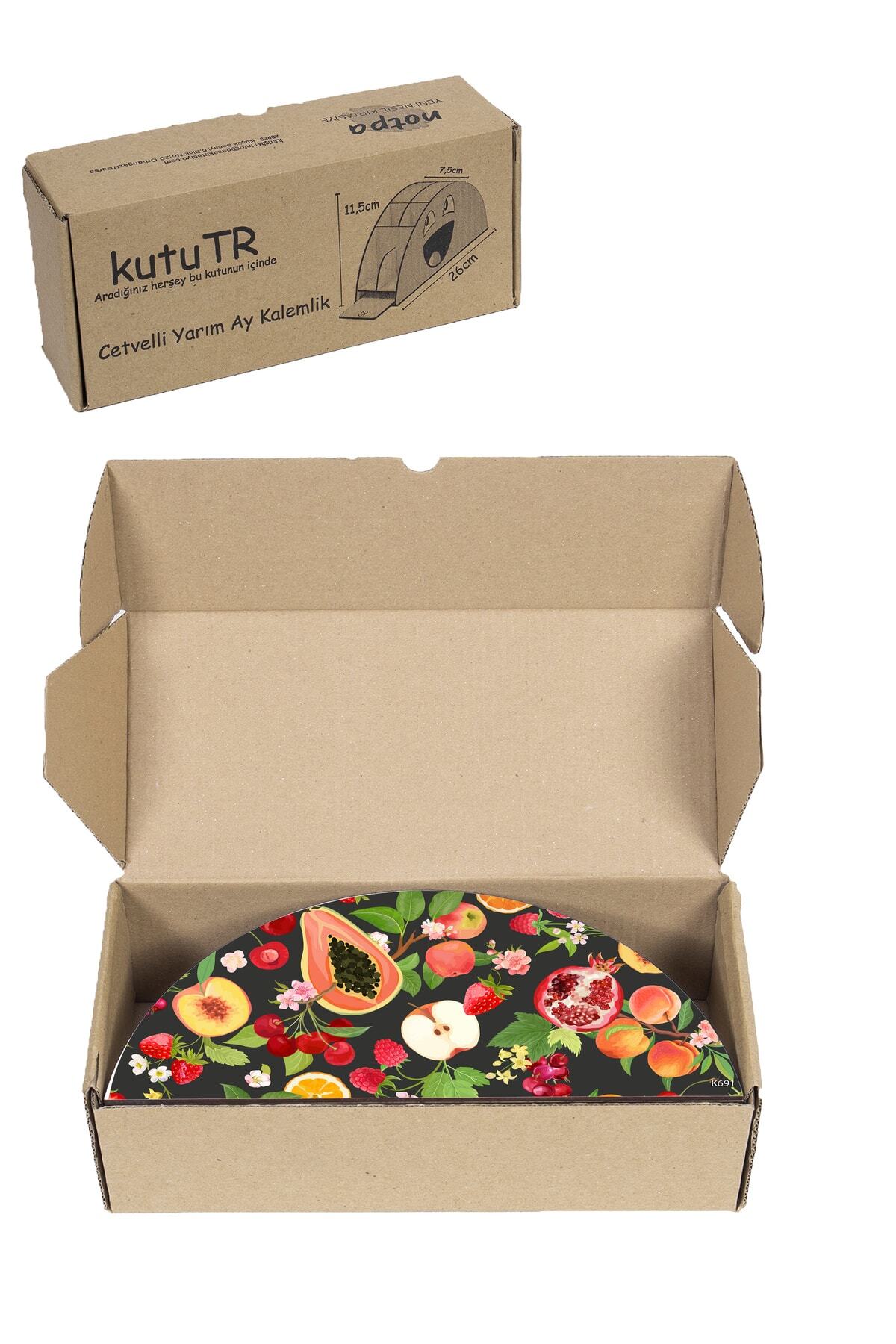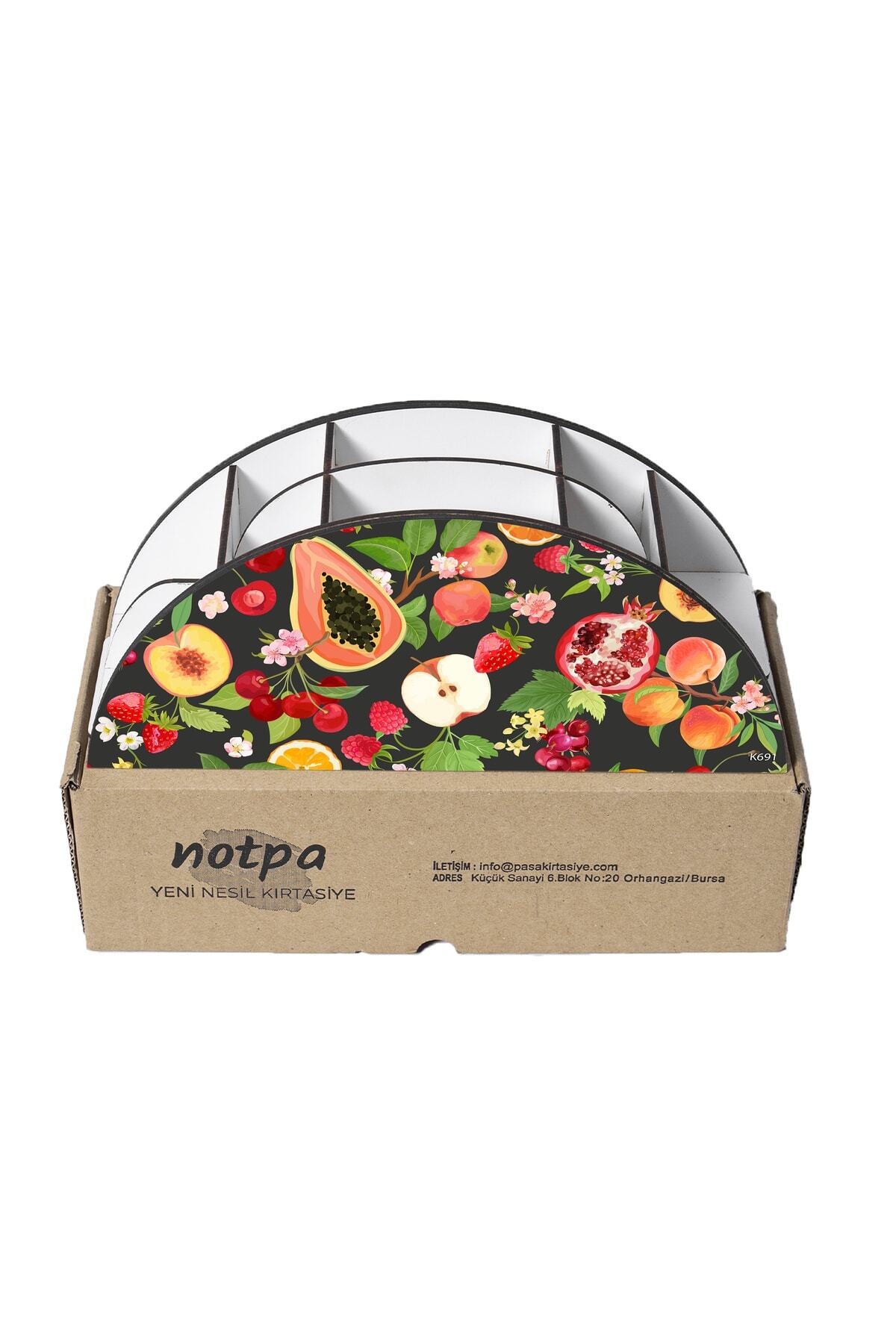 Ahşap Vip Meyve Serisi Gökkuşağı Cetvelli Masaüstü Kalemlik Organizer Montajlı Kutulu