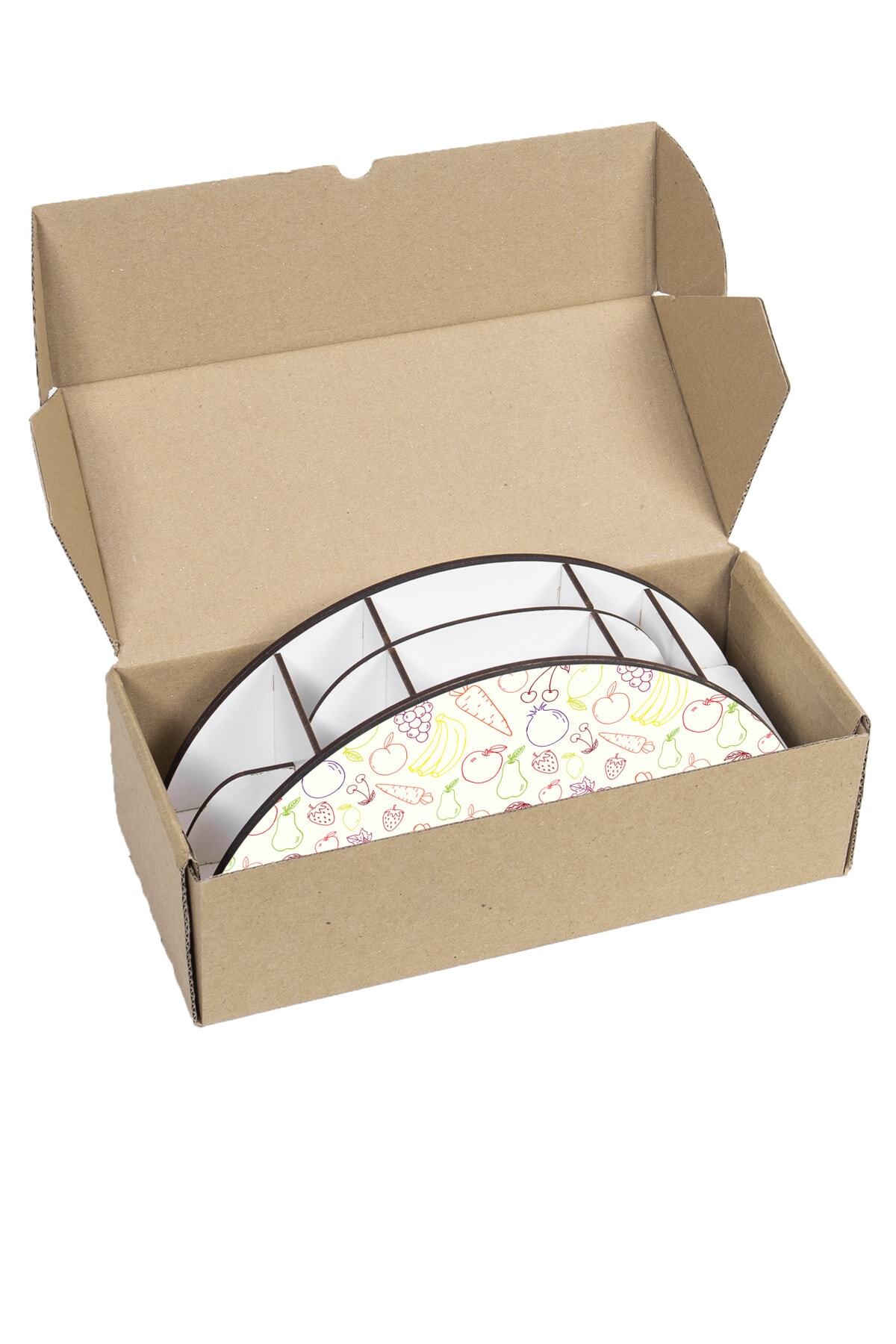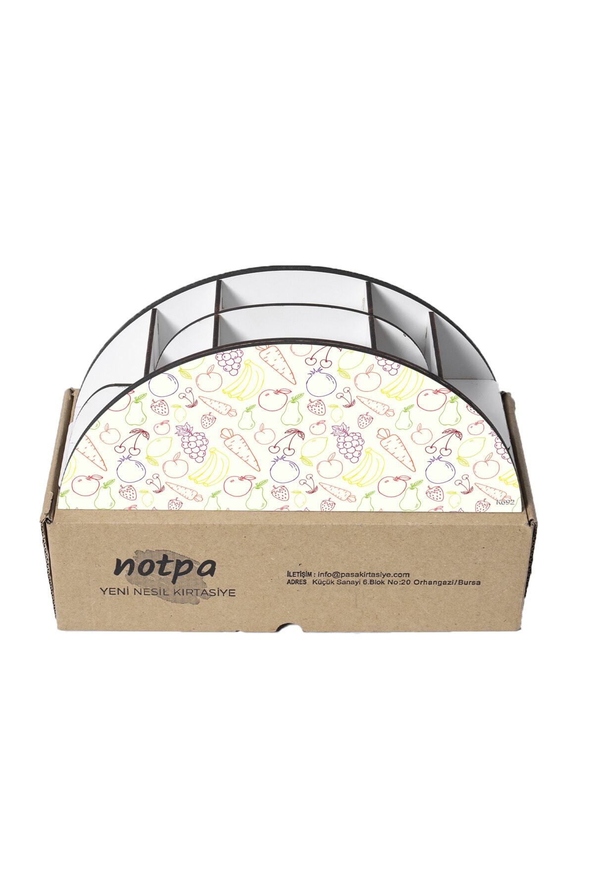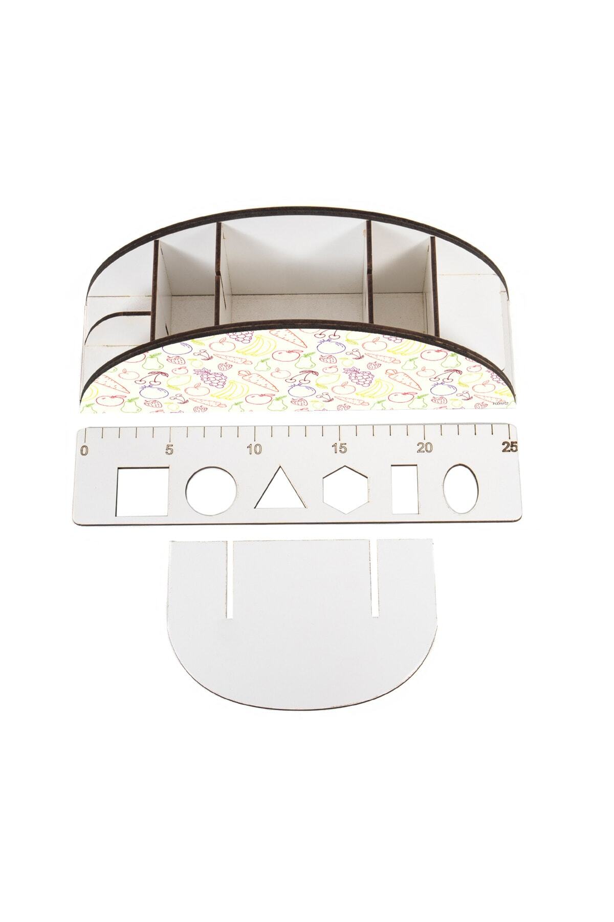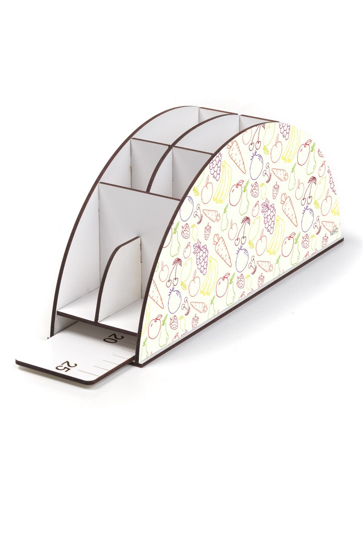 Ahşap VİP Meyve Serisi Gökkuşağı Cetvelli Masaüstü Kalemlik Organizer Montajlı Kutulu