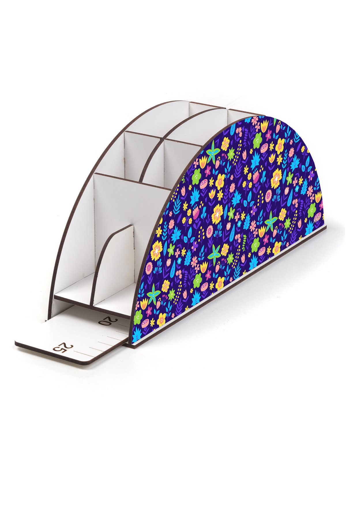 Ahşap Vip Meyve Ve Bitki Model Gökkuşağı Cetvelli Masaüstü Kalemlik Organizer Montajlı Kutulu