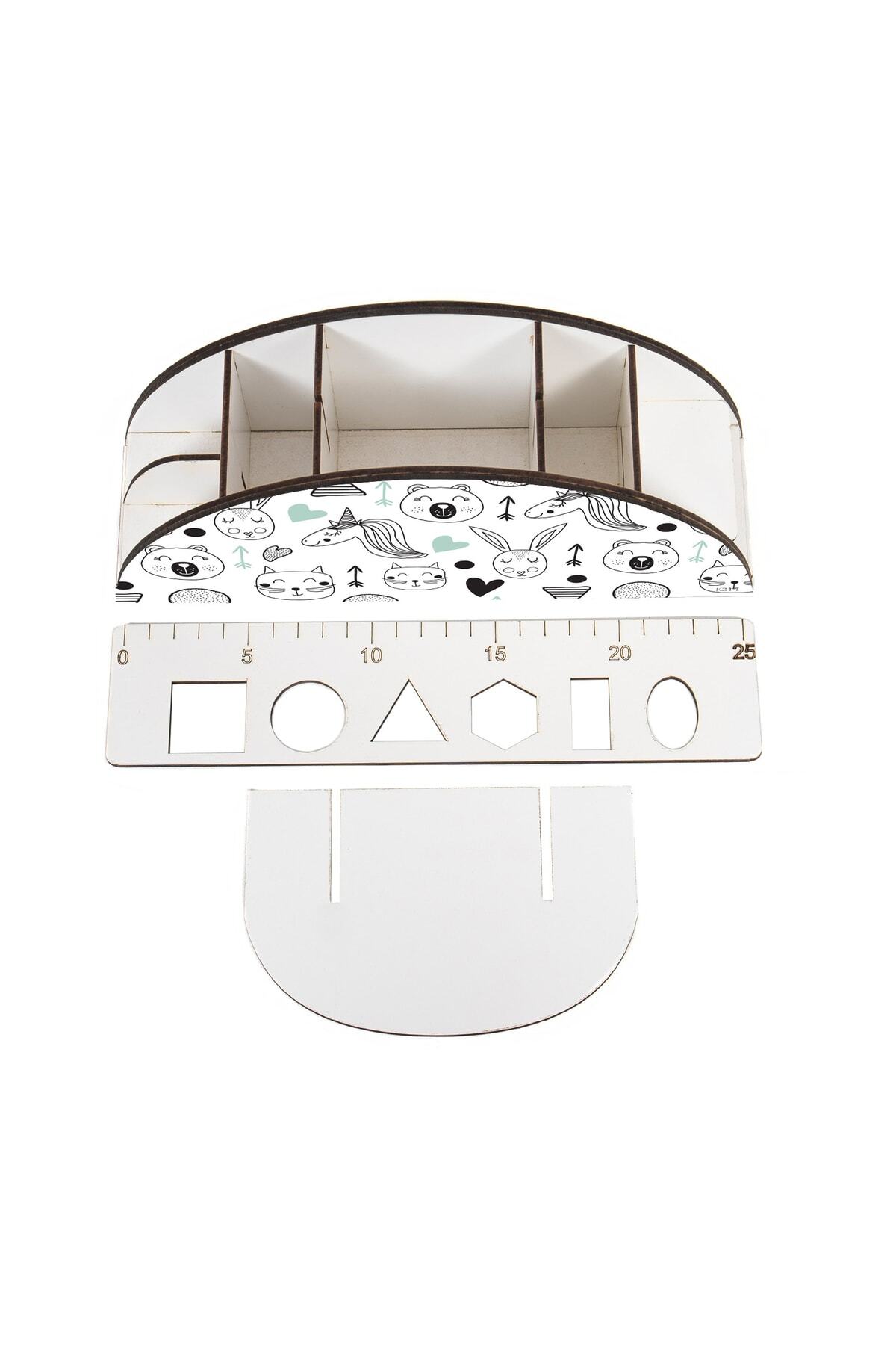 Ahşap Vip Mini Animals Gökkuşağı Cetvelli Masaüstü Kalemlik Organizer Montajlı Kutulu