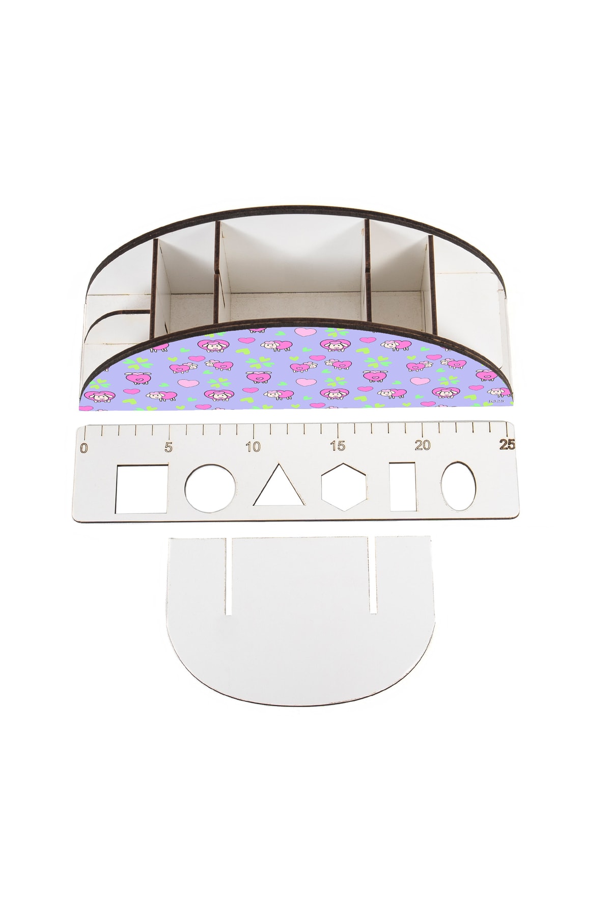 Ahşap Vip Mini Animals Gökkuşağı Cetvelli Masaüstü Kalemlik Organizer Montajlı Kutulu